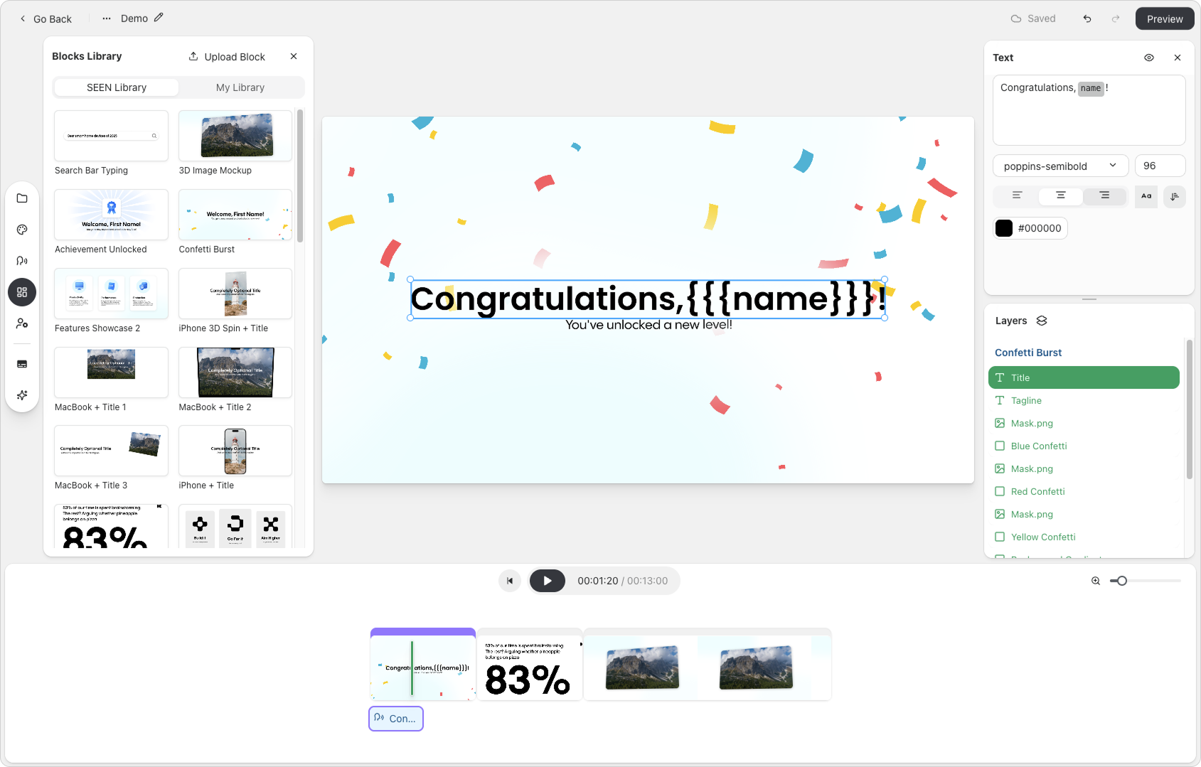 - Studio: A modular, block-based editor where marketers and content teams can design and customize video templates without needing production support.
