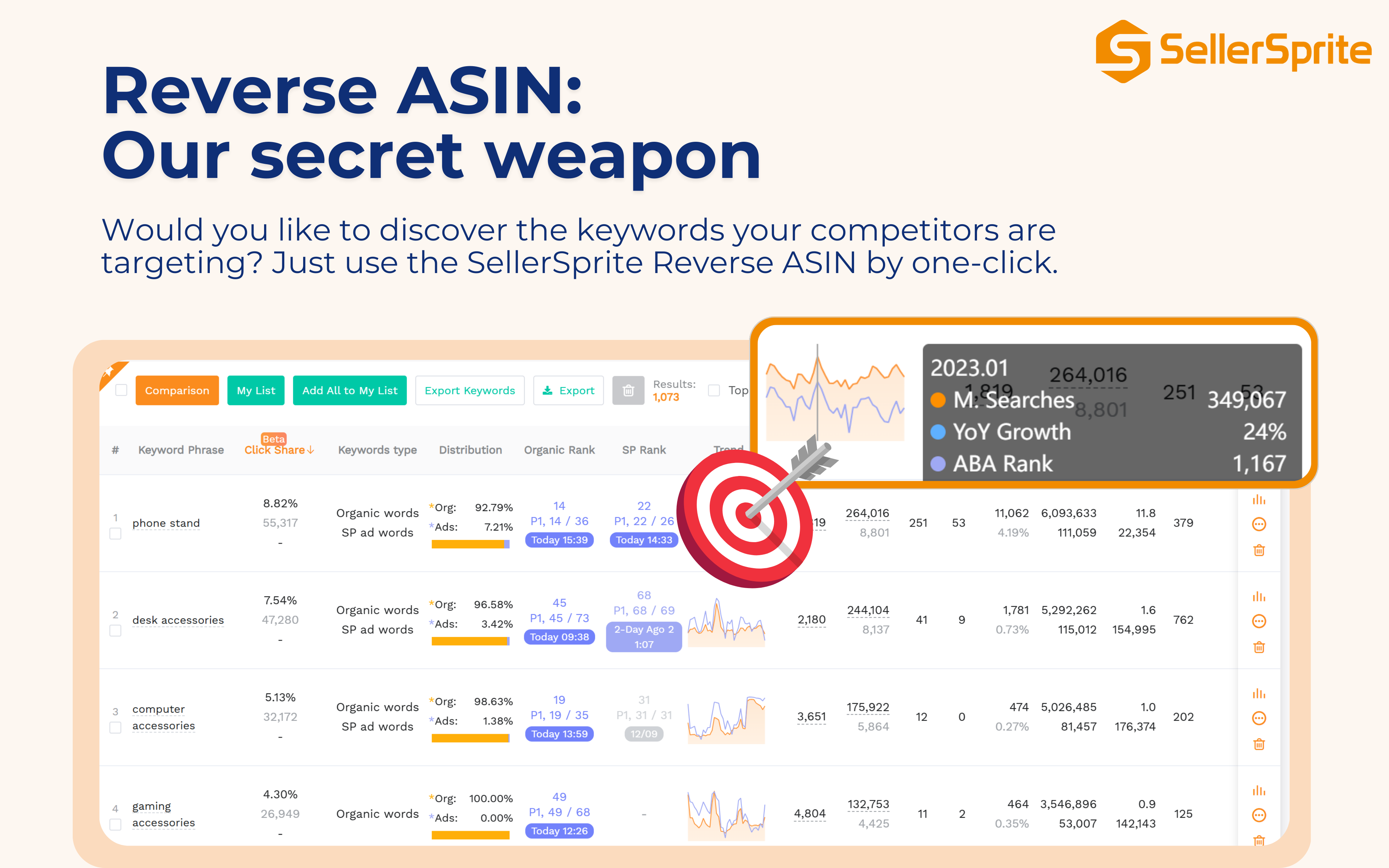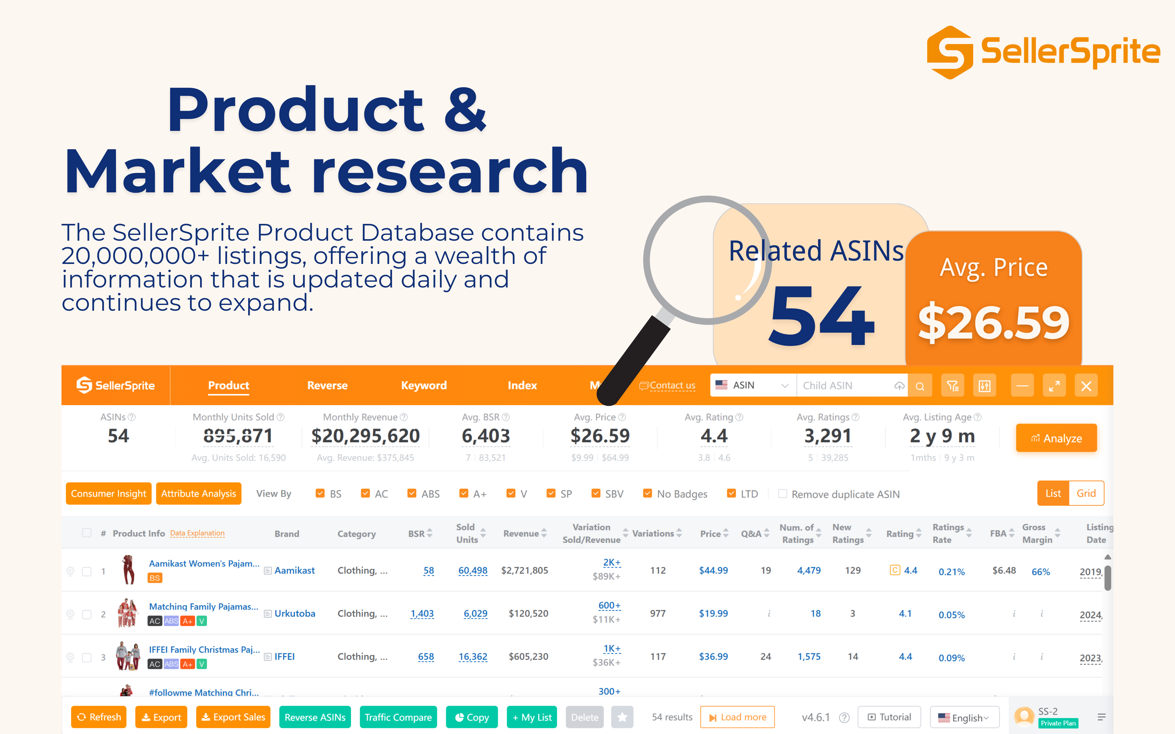 SellerSprite is an Amazon seller tool SaaS software, based on big data and artificial intelligence technologies. It provides Amazon cross-border sellers with one-stop solutions for product research, market analysis, listing optimization, competitor comparison, and product monitoring. These functionalities assist Amazon sellers in discovering niche markets and creating best-selling products.