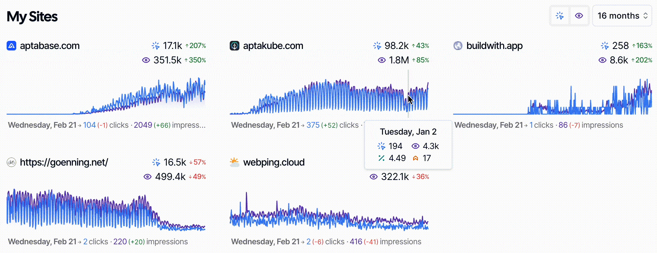 - Ability to aggregate data from multiple GSC properties, to see trends across specific sub-sets of client industries.