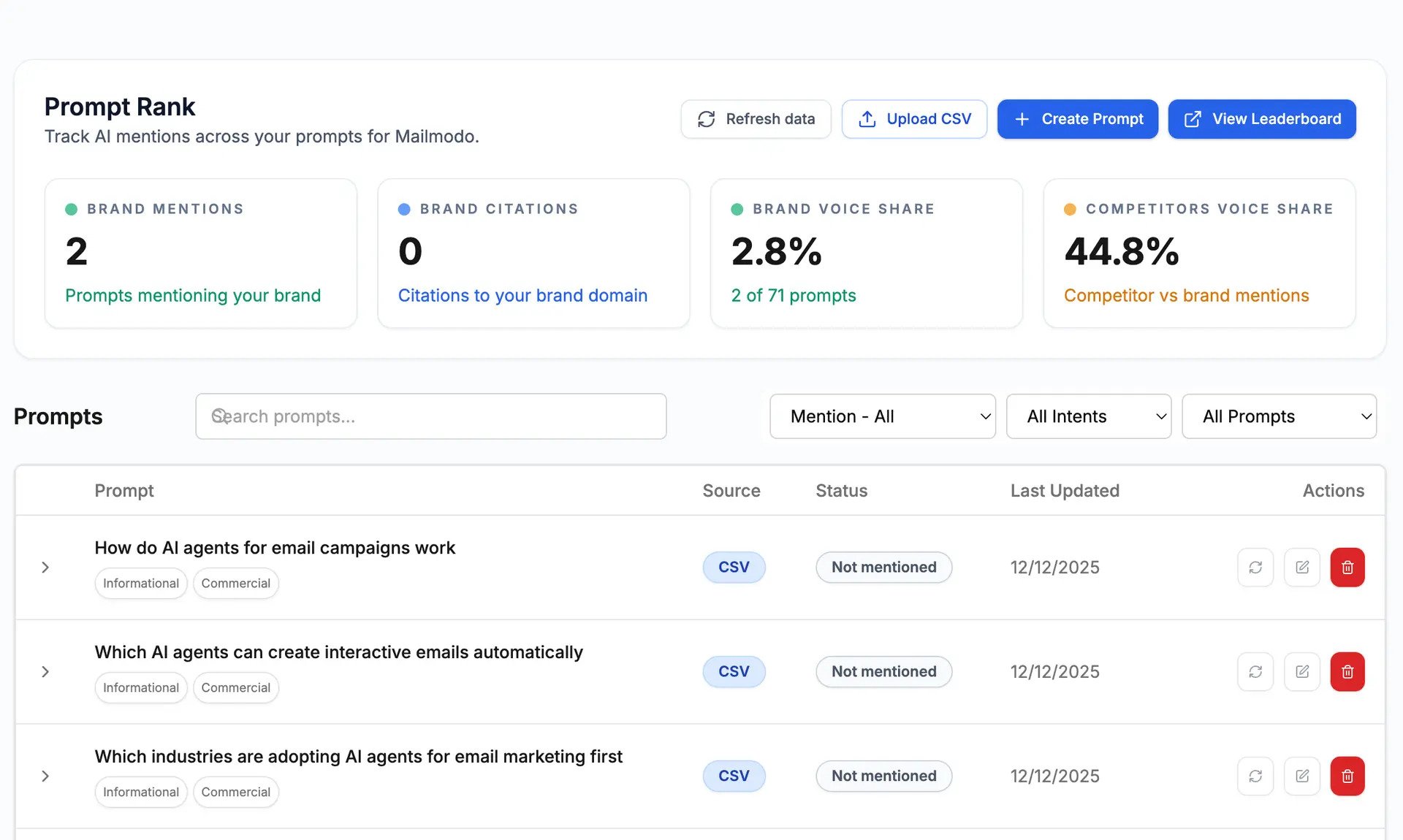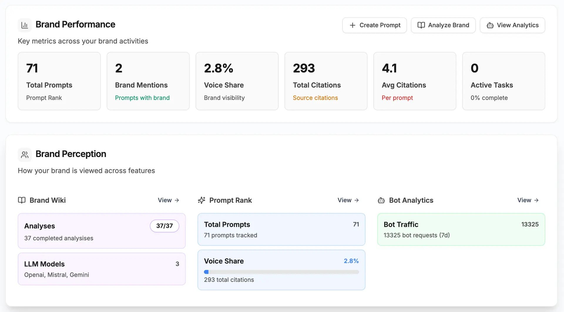 Track LLM referral and bot traffic, measure prompt rankings, and monitor how LLMs talk about your brand.
