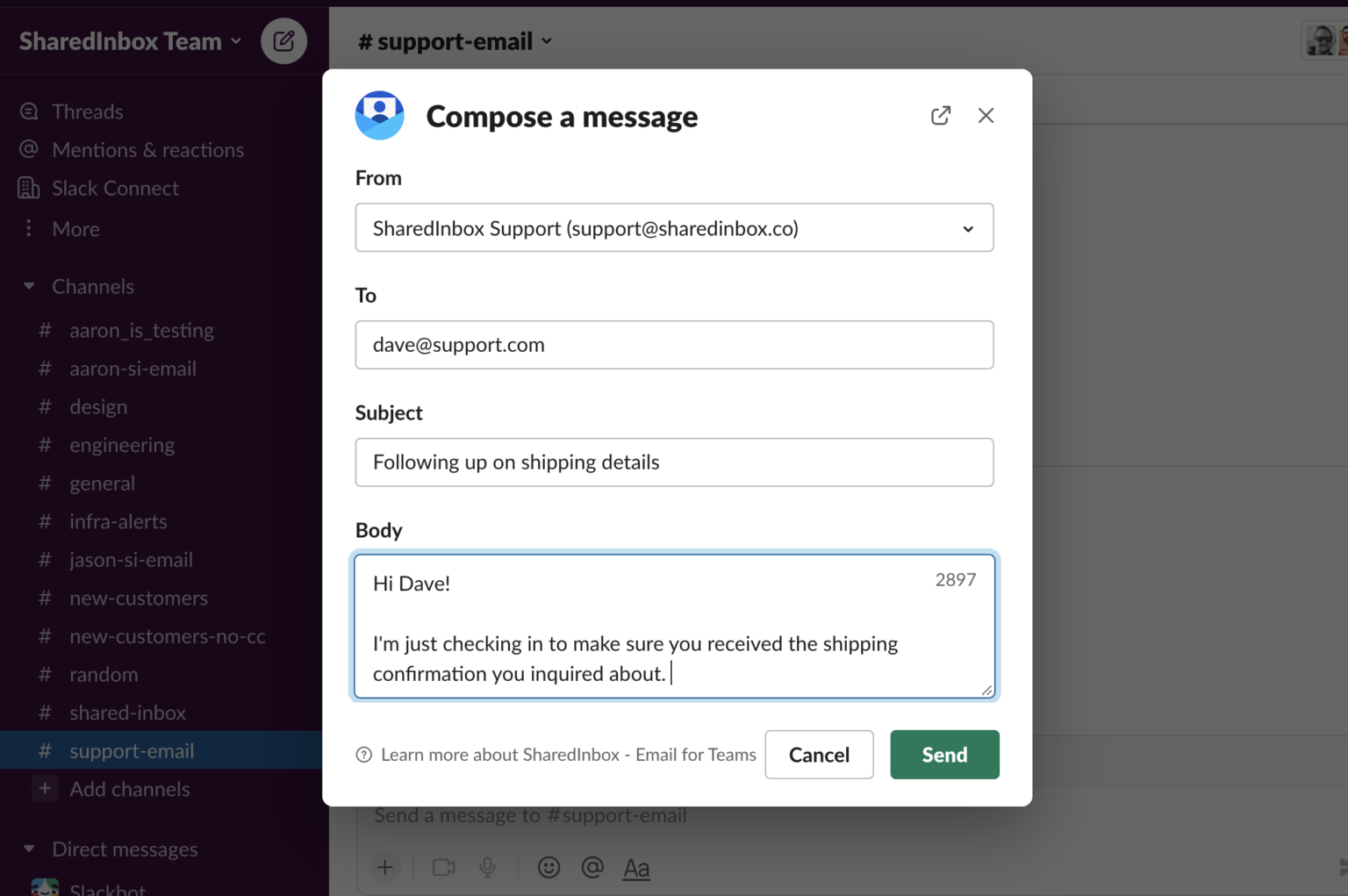 Our team already uses Slack for team communication but have relied on mix and match (manual) solutions for handling sales and support requests that come in via email. Once we found SharedInbox, we could streamline our internal workflow and external communication through the Slack interface we were already comfortable with. I love that we can have an internal threaded discussion about a particular email in one place instead of getting on the phone or sending internal emails referencing another. It keeps things in one place and provides a simple but elegant solution to a pain point our company was having. Review collected by and hosted on G2.com.