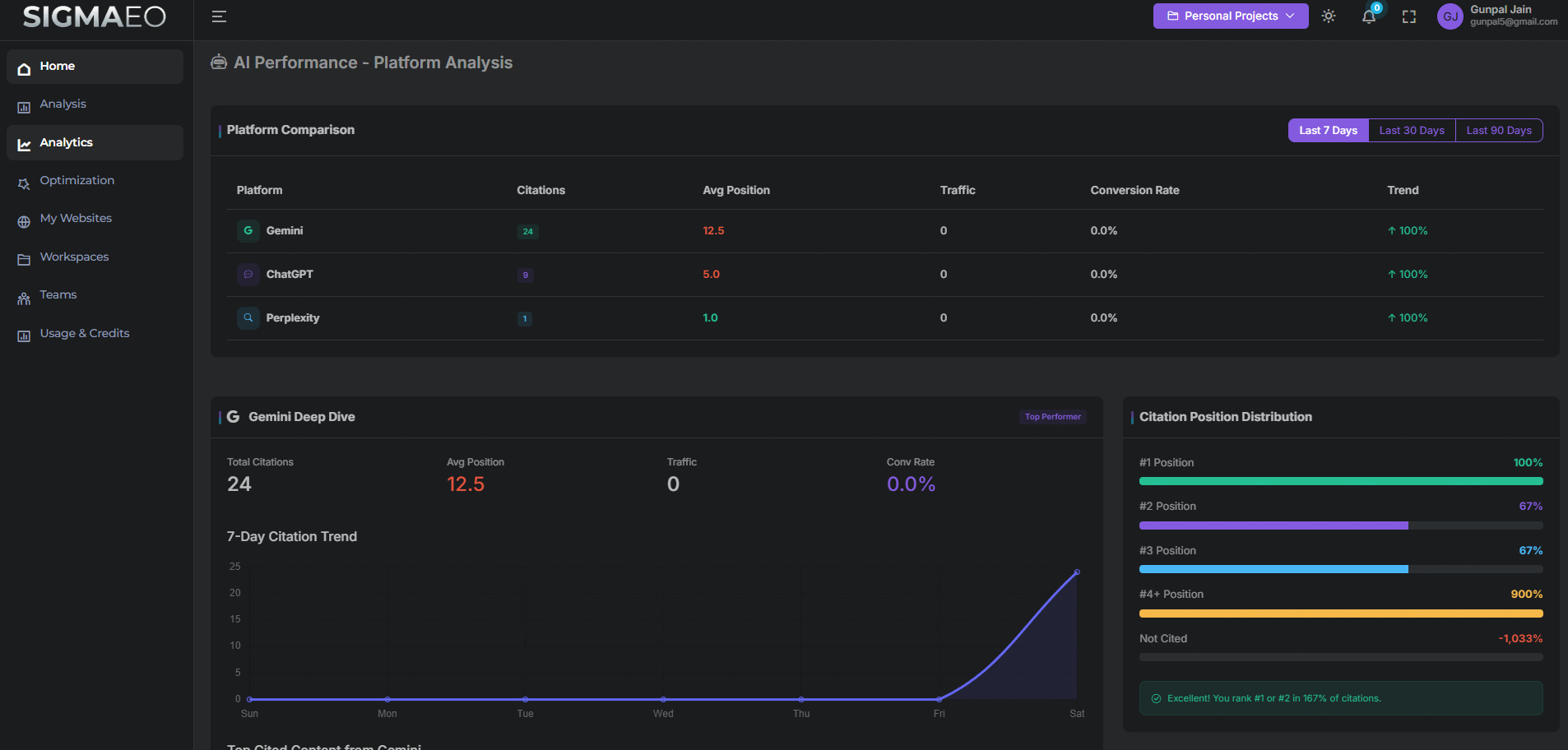 SIGMAEO All-in-one unified strategy Actionable AI search visibility tracking N/A (Premium)