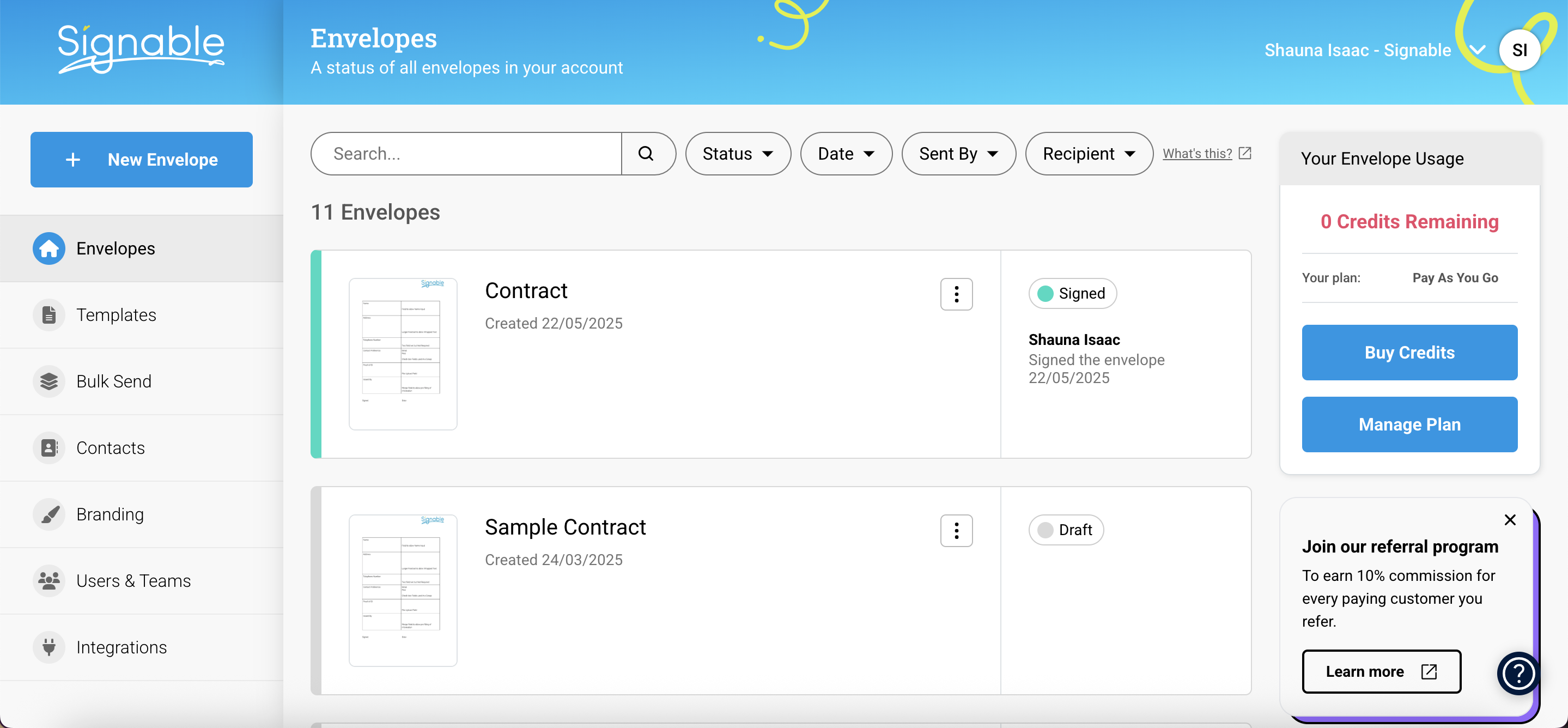Signable has been an excellent e-sign tool for us, especially during the pandemic when we did everything electronically. It has helped us get a faster turnaround with both company and external clients' documents and approvals. Review collected by and hosted on G2.com.