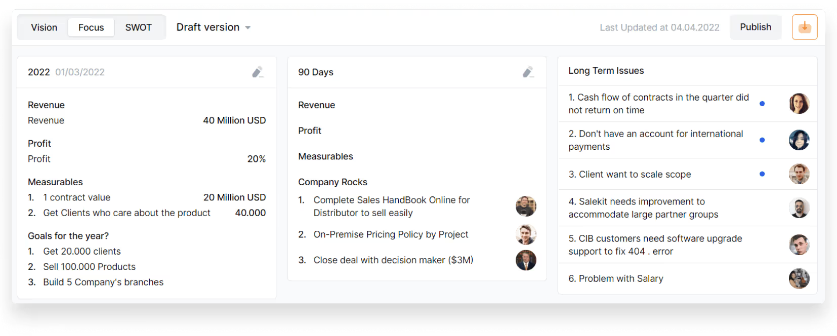Simplamo is a user-friendly powerhouse that effortlessly integrates renowned management models like EOS, BSC, OKR, and KPI, ensuring both ease of use and seamless implementation. This software not only tackles the big picture of our company but also ensures a smooth transition from visionary goals to actionable results. The benefits are profound: Team connection, Goal ownership, healthy and transparent Culture. Review collected by and hosted on G2.com.