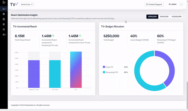 TV+ is a solution purpose-built for optimizing linear and CTV advertising. It manages your entire media lifecycle, from analyzing viewership, optimizing plans, activating campaigns, and measuring outcomes. TV+’ patented machine learning algorithm, unified workflows, and full-funnel analytics ensures that your planning, buying, and measurement are the best they can be.