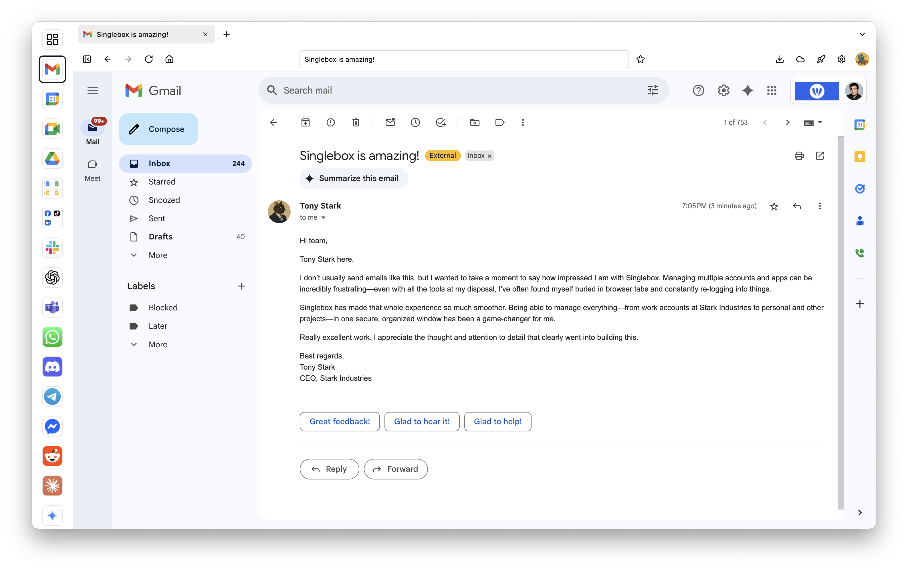 A flexible messenger that integrates with email and lets you store and share files easily.