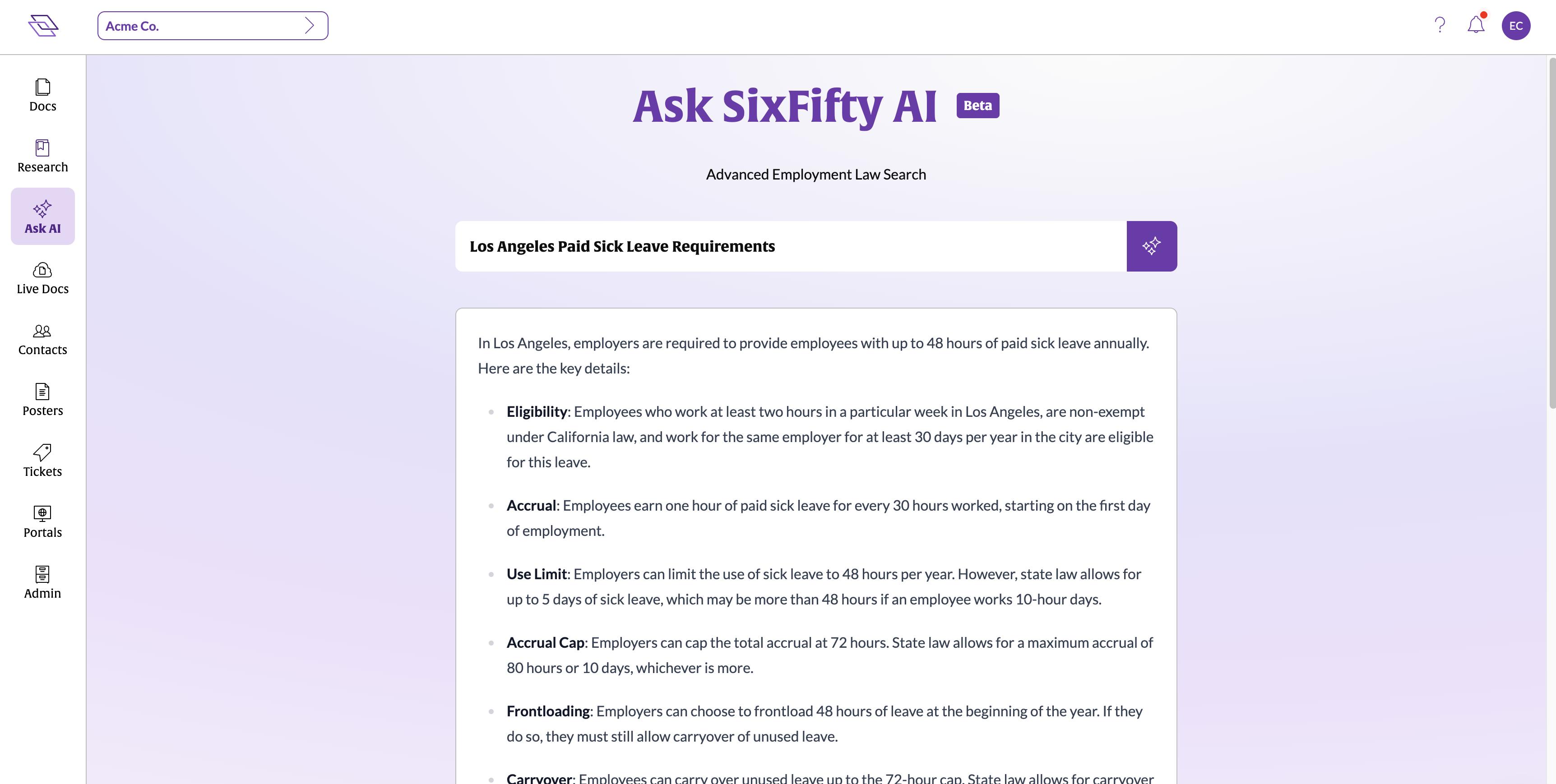 SixFifty AI: Ask any employment law question and get a clear, reliable answer powered by our proprietary research and legal expertise.