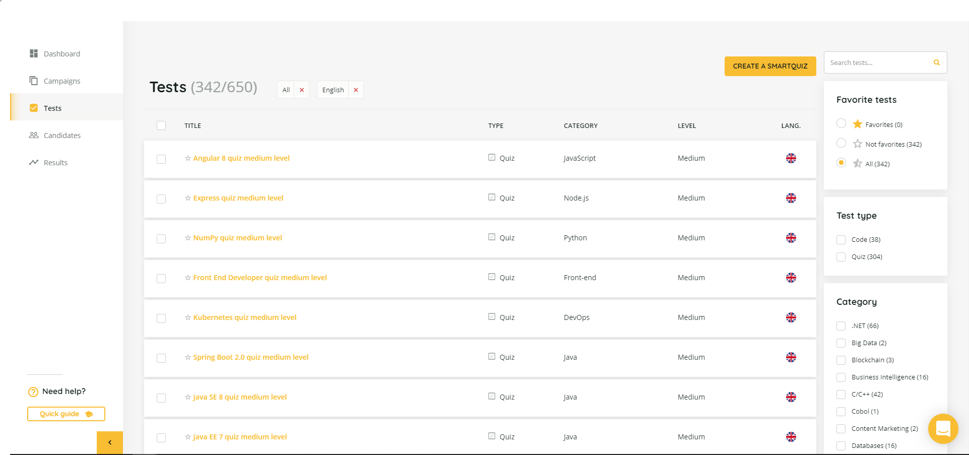 Some of the technical tests lack more advanced versions to cover more depth. Also, some tests don't cover more recent versions of frameworks. Review collected by and hosted on G2.com.