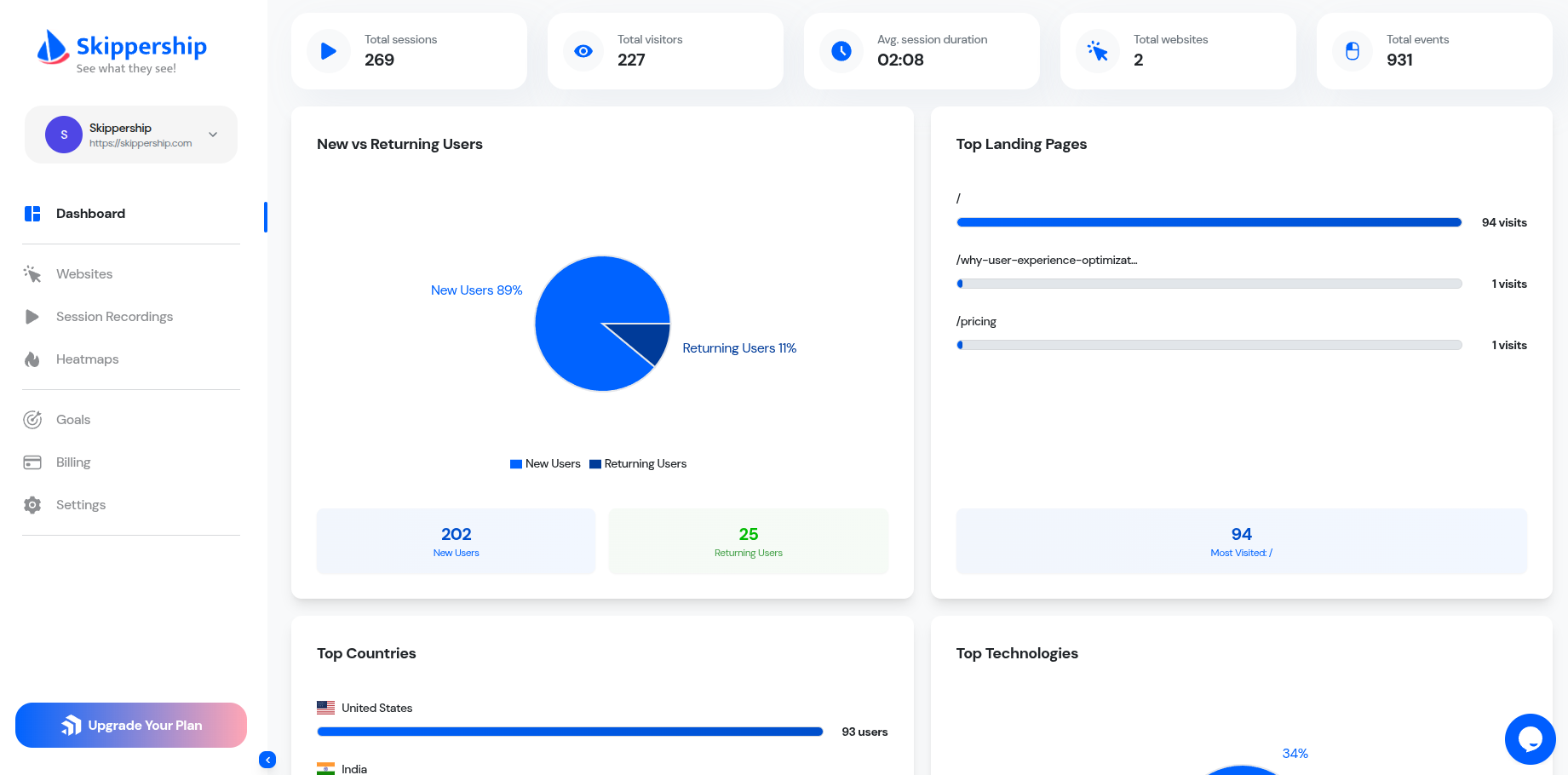 Skippership gives us heatmaps, session replays, and funnel tracking in one place without usage caps. The AI review is a real time saver it quickly highlights where users get stuck and even points out possible causes. Compared to other analytics tools, it feels lightweight and easier to understand for non-technical team members. Review collected by and hosted on G2.com.