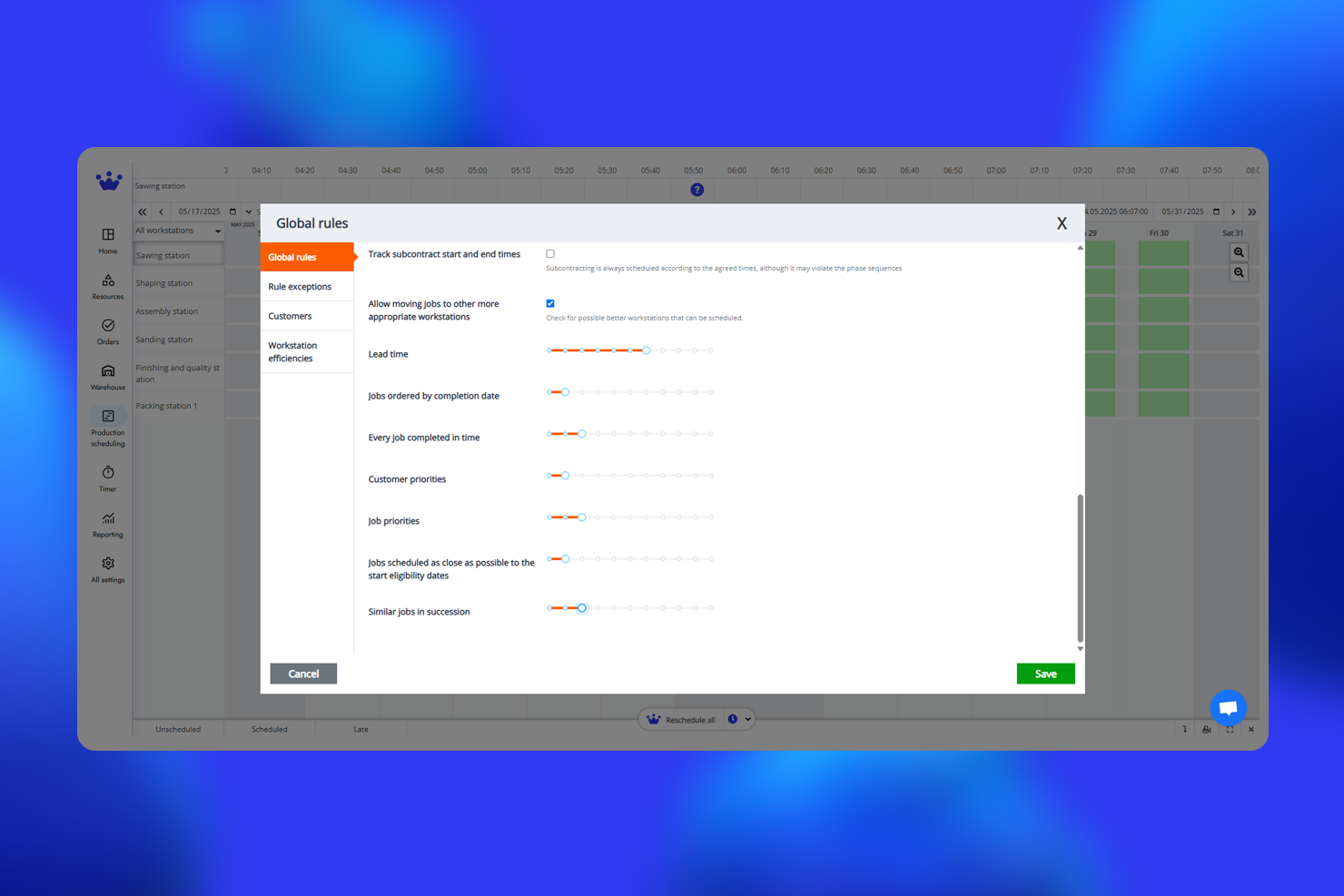 SkyPlanner incorporates factors such as machine capacity, material, lead times and due dates. With this approach, we have been able to eliminate some of the constraints and streamline the production process. Review collected by and hosted on G2.com.