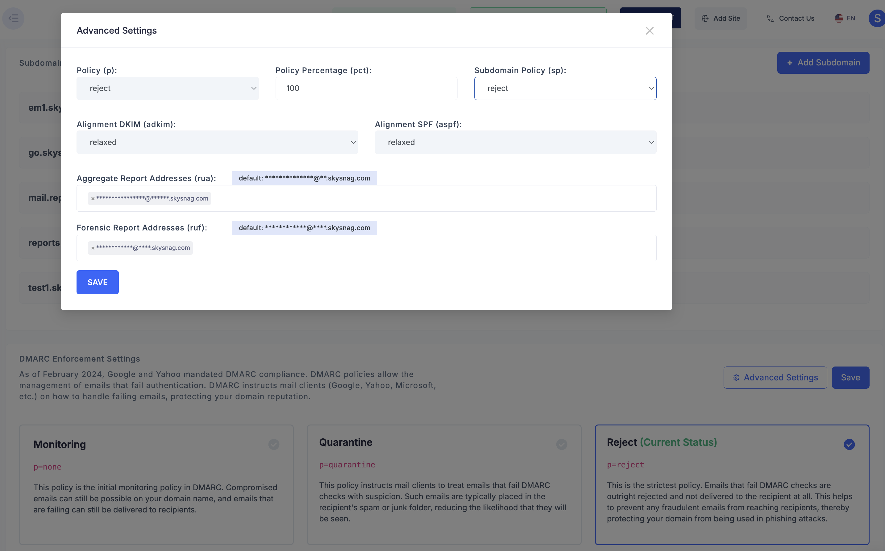 Skysnag makes complex email authentication surprisingly manageable. The automation around DMARC, SPF, and DKIM setup is seamless, and the continuous monitoring gives immediate visibility into spoofing attempts. As a technical integrator, I value how quickly the platform integrates with enterprise environments without heavy configuration. The support team is responsive and technically sharp - not just answering questions but helping resolve issues at the root. Configuration entirely and hosting MTA-STS properly with TLS-RPT integration was an added extra. We're currently using it on a daily basis to track activity happening on our domain name. Review collected by and hosted on G2.com.