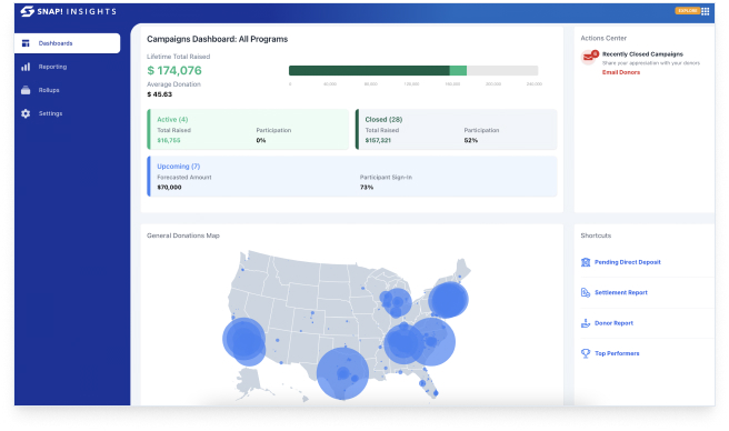 With natural language search, you can ask questions like “How many new volunteers joined last quarter?” or “Which fundraising campaign had the best return by region?” and get instant answers backed by your data. No coding, reports, or analysts required.
