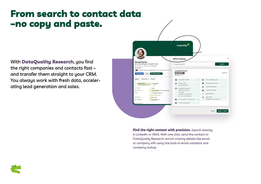 We’re thrilled that snapAddy makes your contact research and CRM updates so much faster and easier.