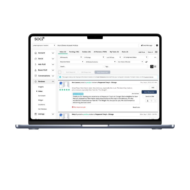 Soci integrates with several major platforms like Facebook, Instagram, Google Business Profiles, and LinkedIn. The local listing and review management integration also helps streamline reputation management within the same tool.