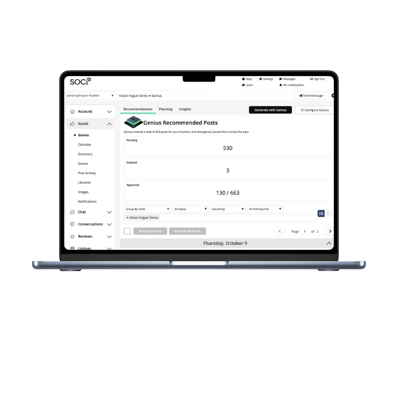 One of Soci’s strongest features is its focus on brand protection. It gives corporate teams tight control over messaging and creative assets, while still allowing localized customization. This balance is critical for businesses with many locations or franchises.