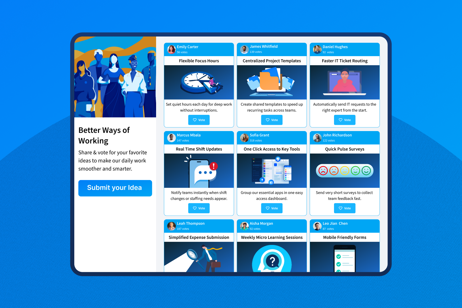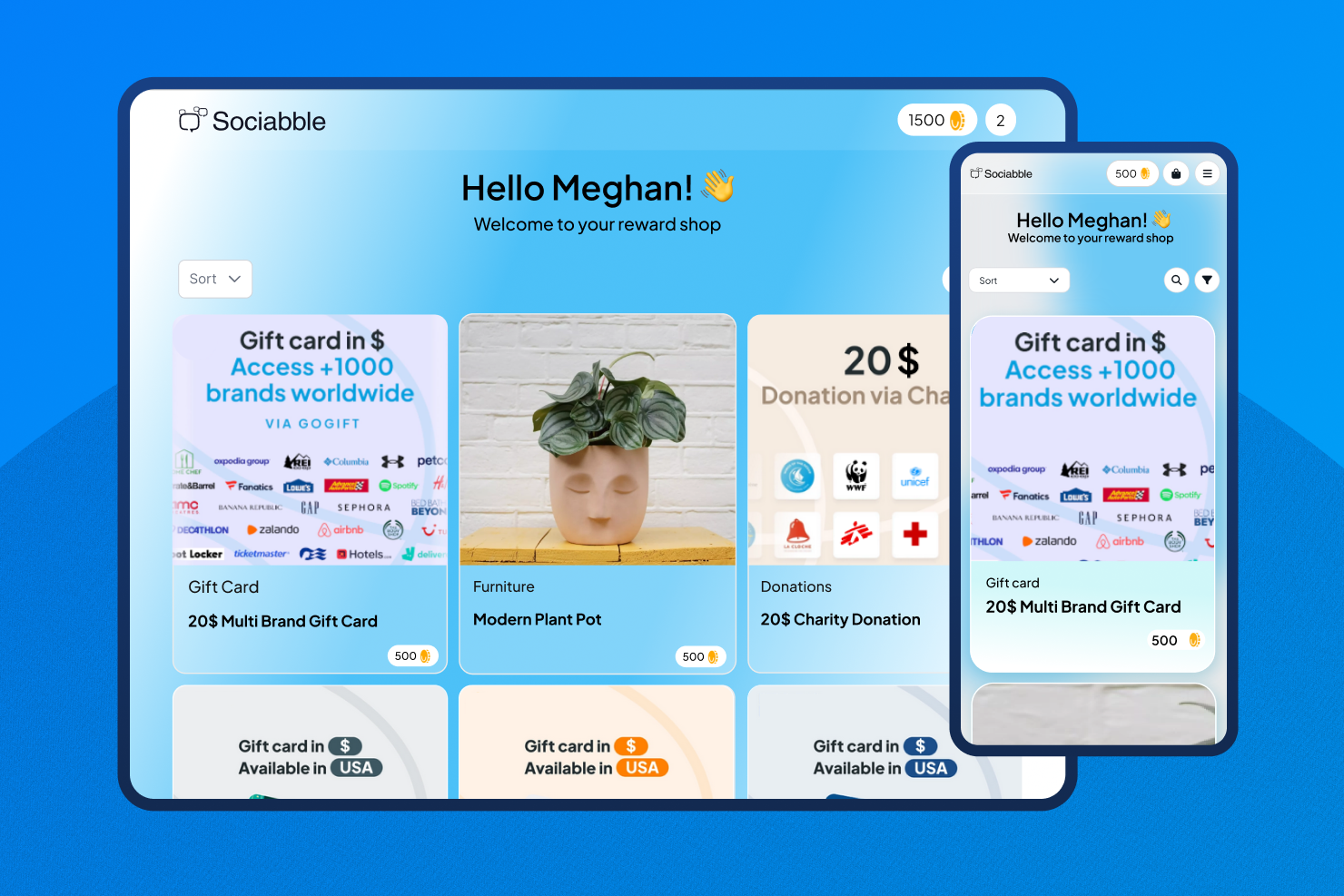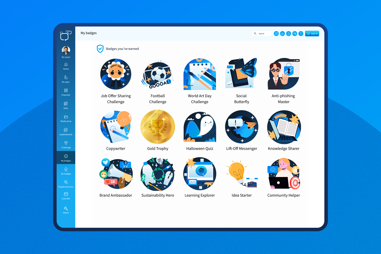 Gamification, recognition messages, points, leaderboards, and rewards are natively integrated into the platform. These features help highlight contributions, motivate employees, and strengthen engagement without adding operational complexity for your teams.