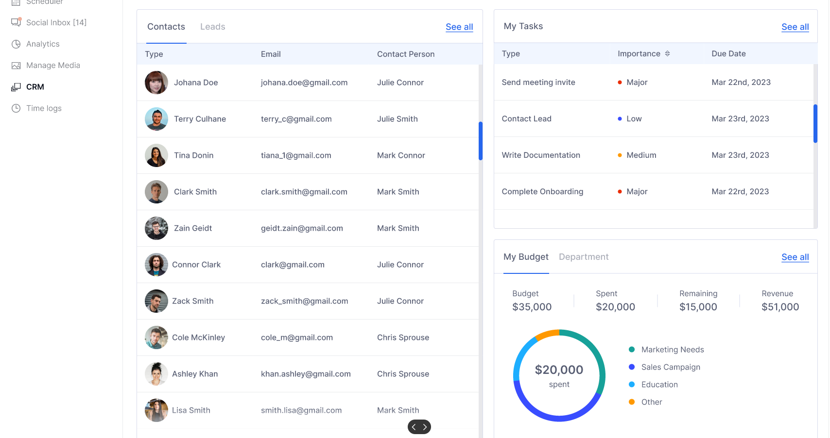 Schedule unlimited posts, manage social networks, track conversations, and measure performance from a single dashboard.