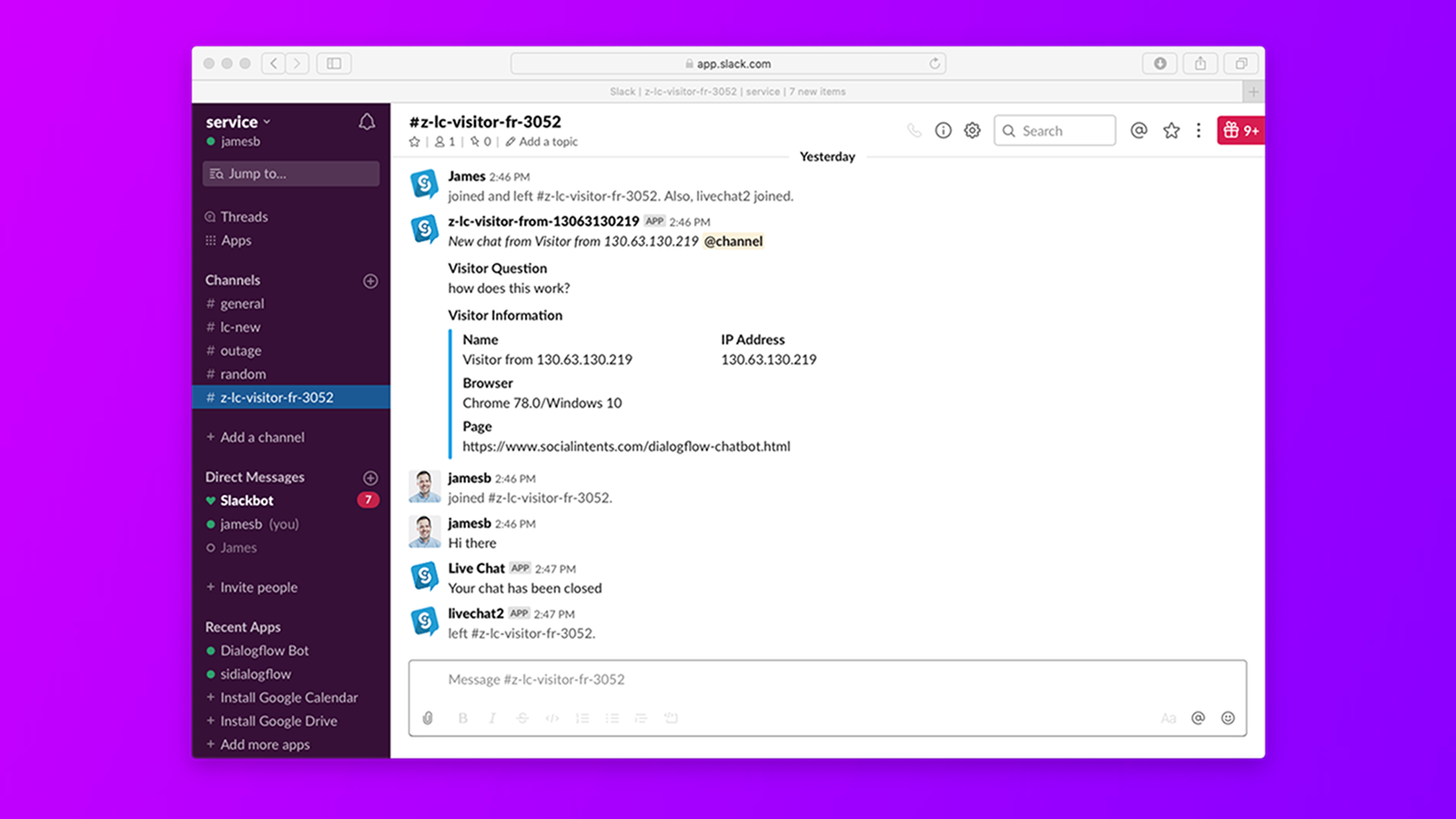 Social Intents is a Live Chat and AI Chatbot platform designed to enhance communication between businesses and their website visitors. This solution enables teams to manage website chats directly from popular business collaboration tools such as Microsoft Teams, Slack, Google Chat, Zoom, and Webex. By integrating live chat and AI chatbots into platforms that organizations already utilize, Social Intents eliminates the need for context switching, allowing for a more efficient and cohesive communication experience.