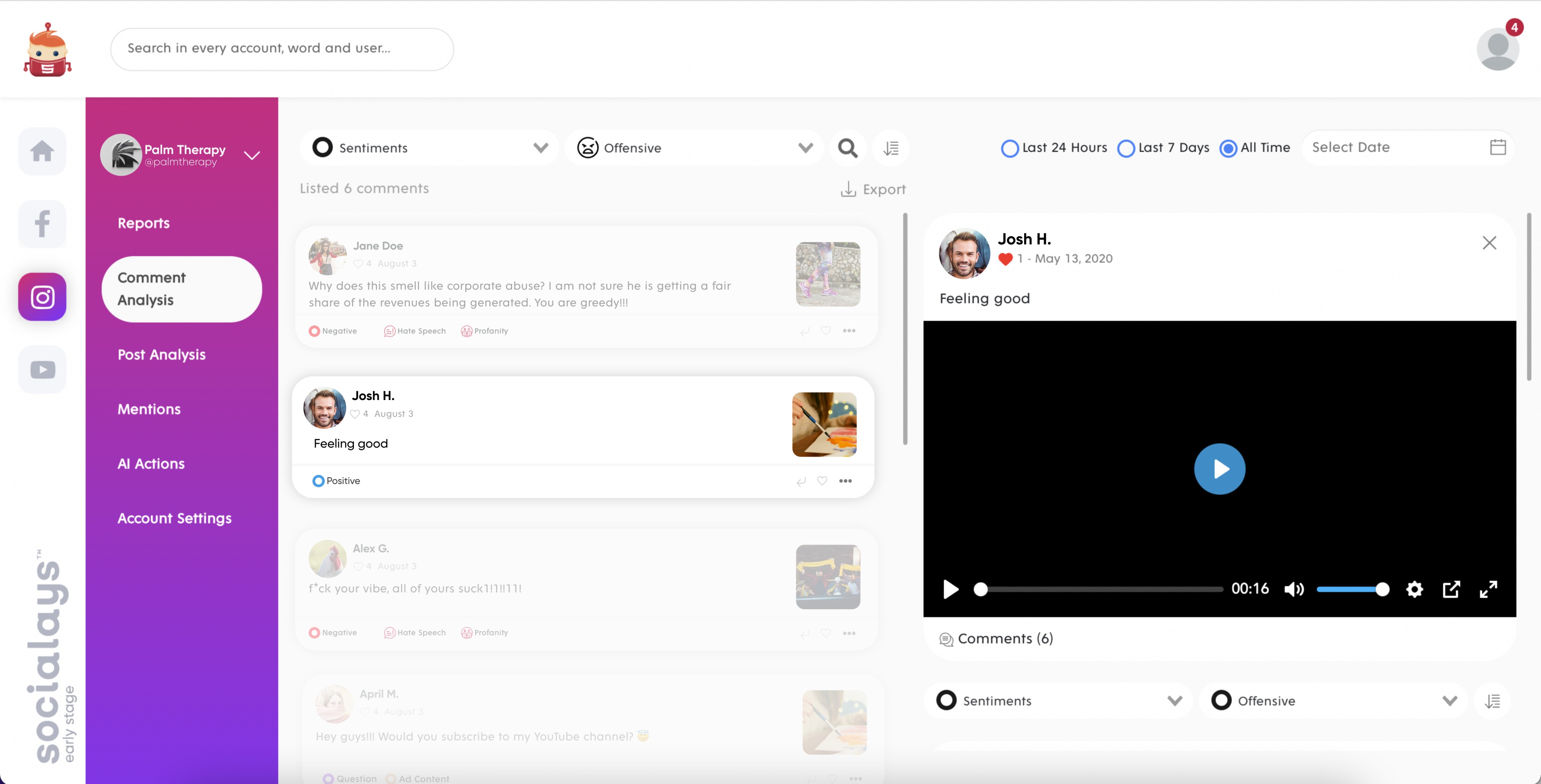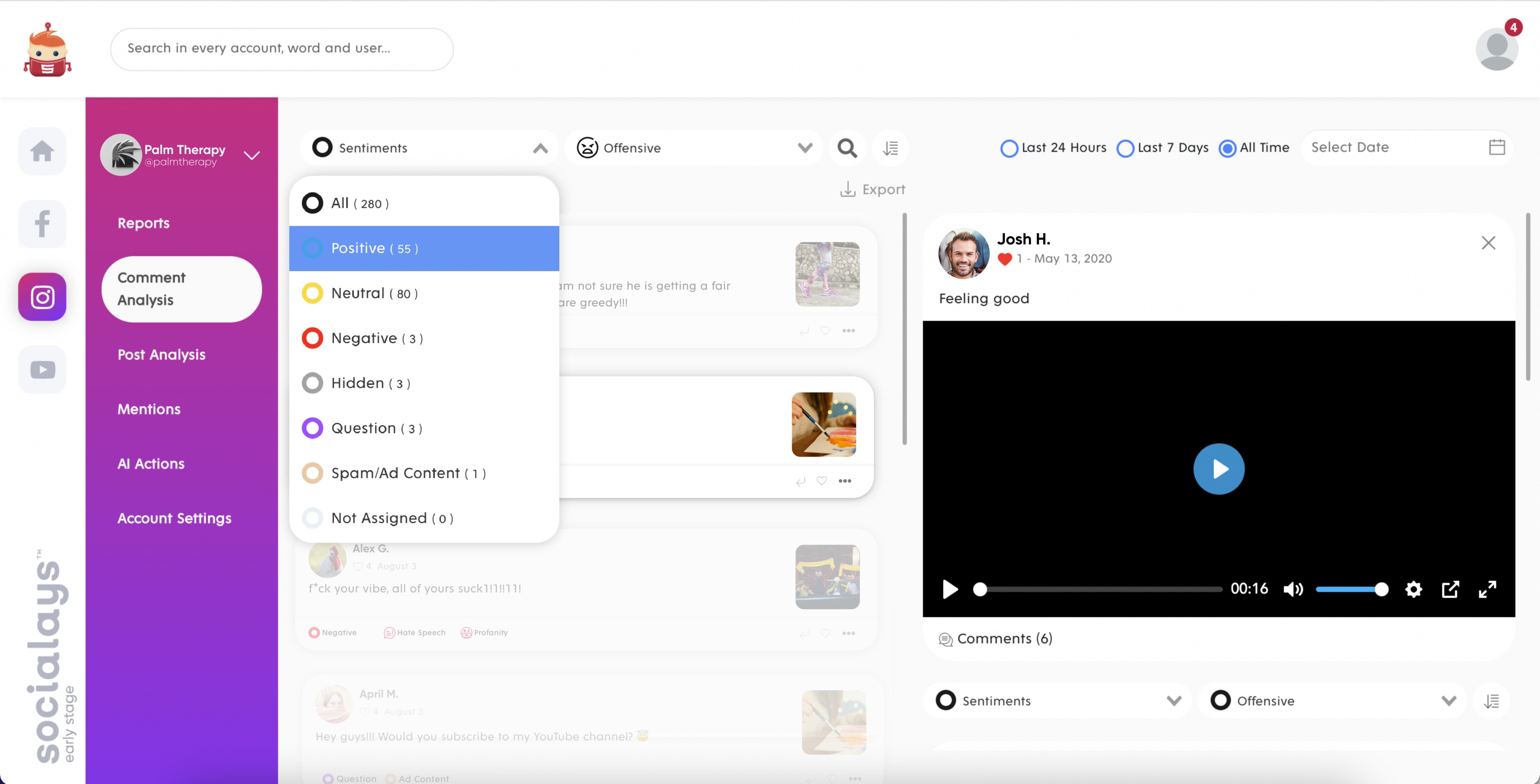 Socialays reads all your comments in a second, analyzes them and auto-categorize by it’s sentiment for you.