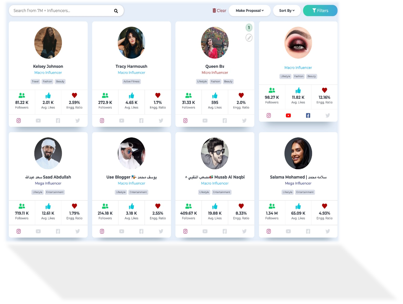 The software detects and avoids spam recognizing engagement groups, fake followers and unauthentic profiles. So you are always sure to get quality results in your influencer research.