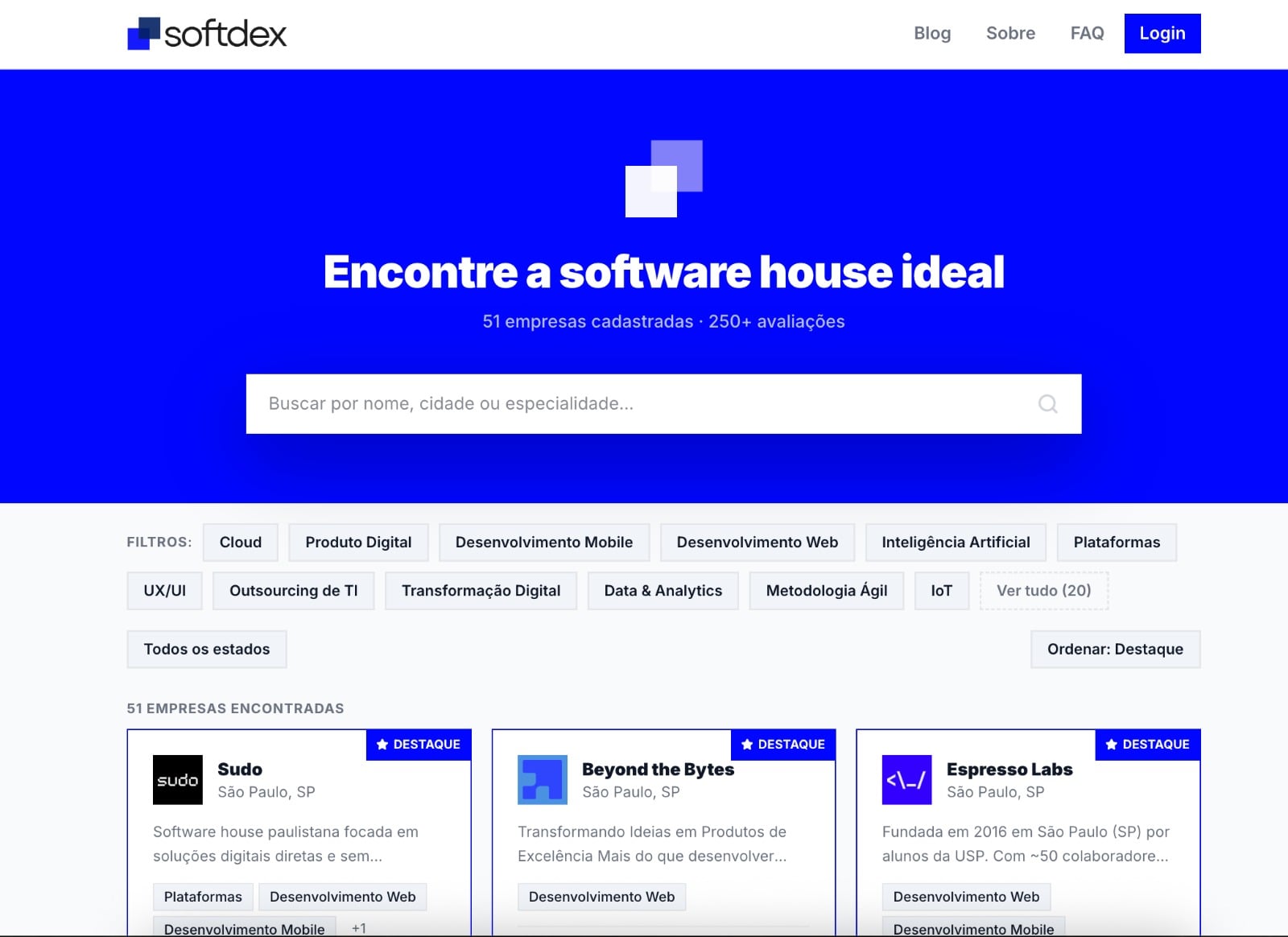 Softdex is Brazil's leading directory for software houses — companies that develop custom digital products, mobile apps, web platforms, and IT outsourcing services.