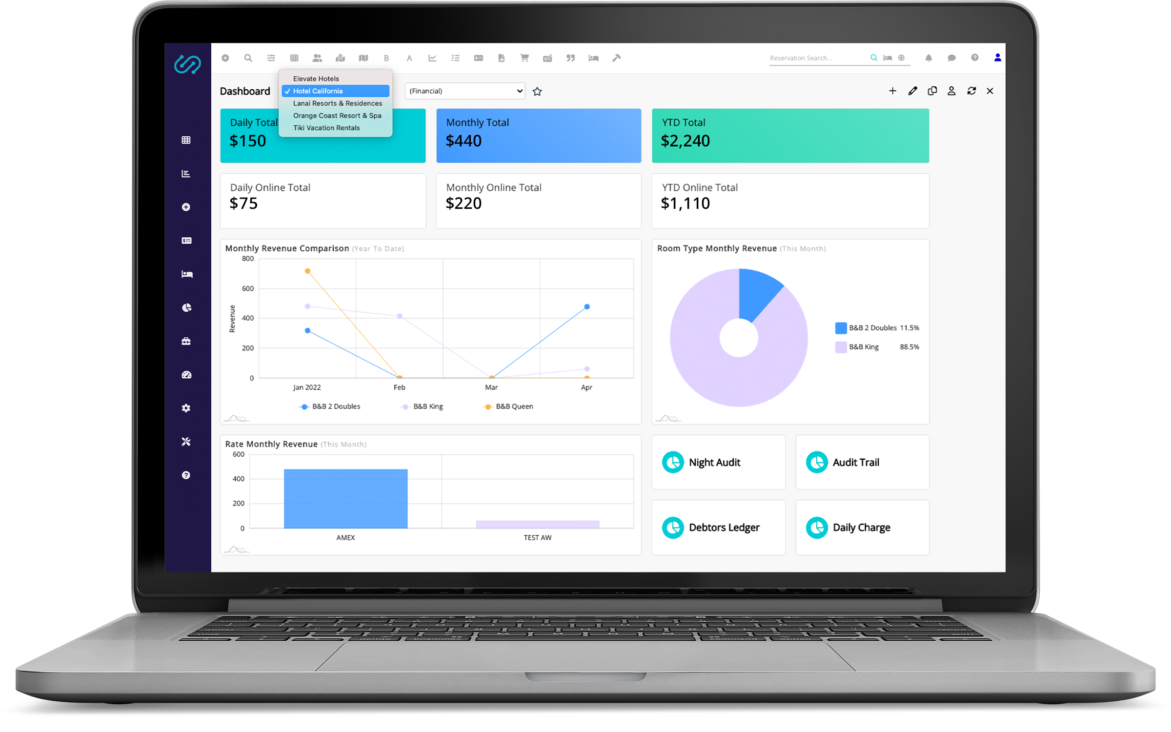 WebRezPro is a hotel property management system that is designed to meet your front and back office needs with features and tools to help manage your reservations and properties.