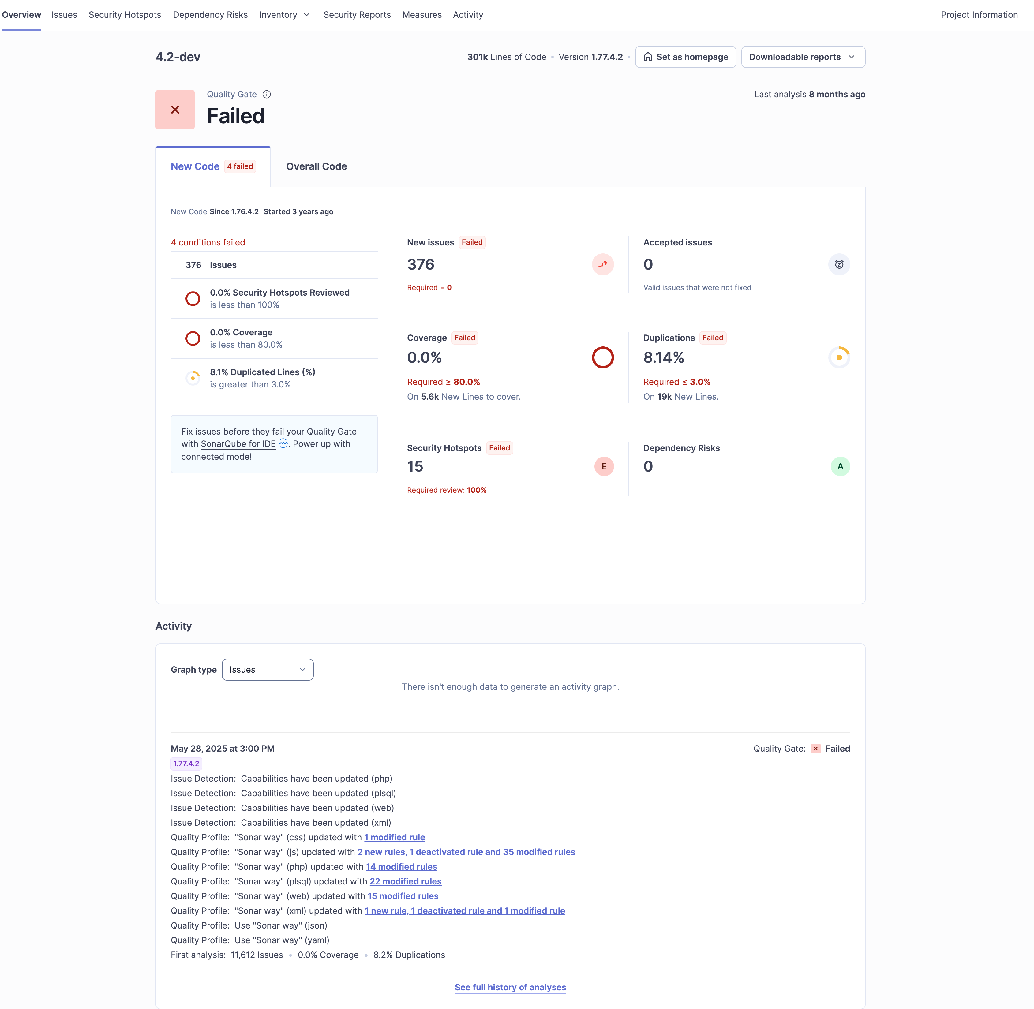 One challenge with SonarQube, especially in the Community Edition that I am using is that the initial setup and rule tuning takes time. Out of the box, some rules can feel overly strict, particularly for older or legacy Java projects. My first scan in 2017 generated a very large number of issues, which was honestly overwhelming. It required effort to decide what to prioritize and how to gradually improve the codebase instead of trying to fix everything at once.