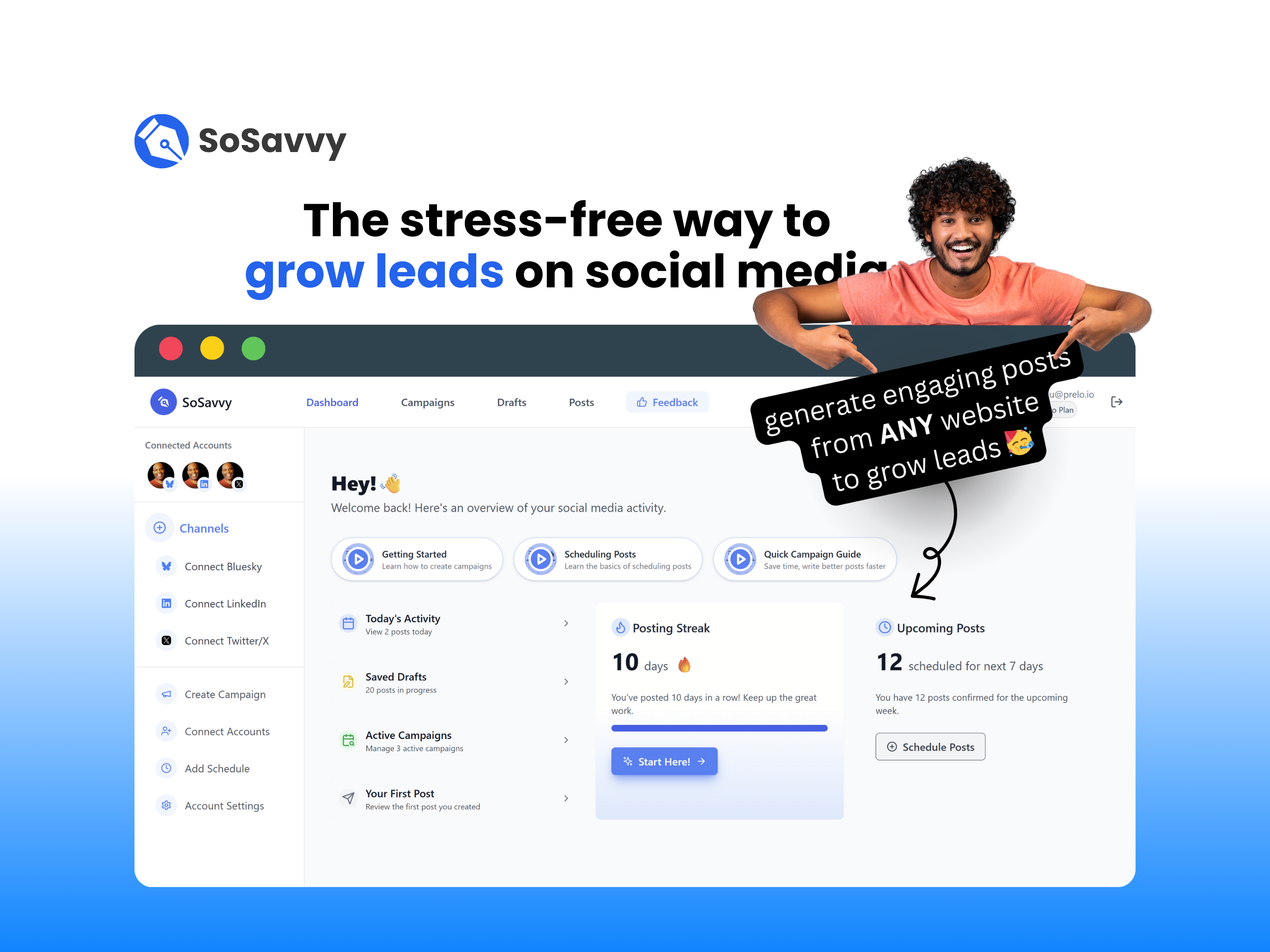 Schedule unlimited posts, manage social networks, track conversations, and measure performance from a single dashboard.