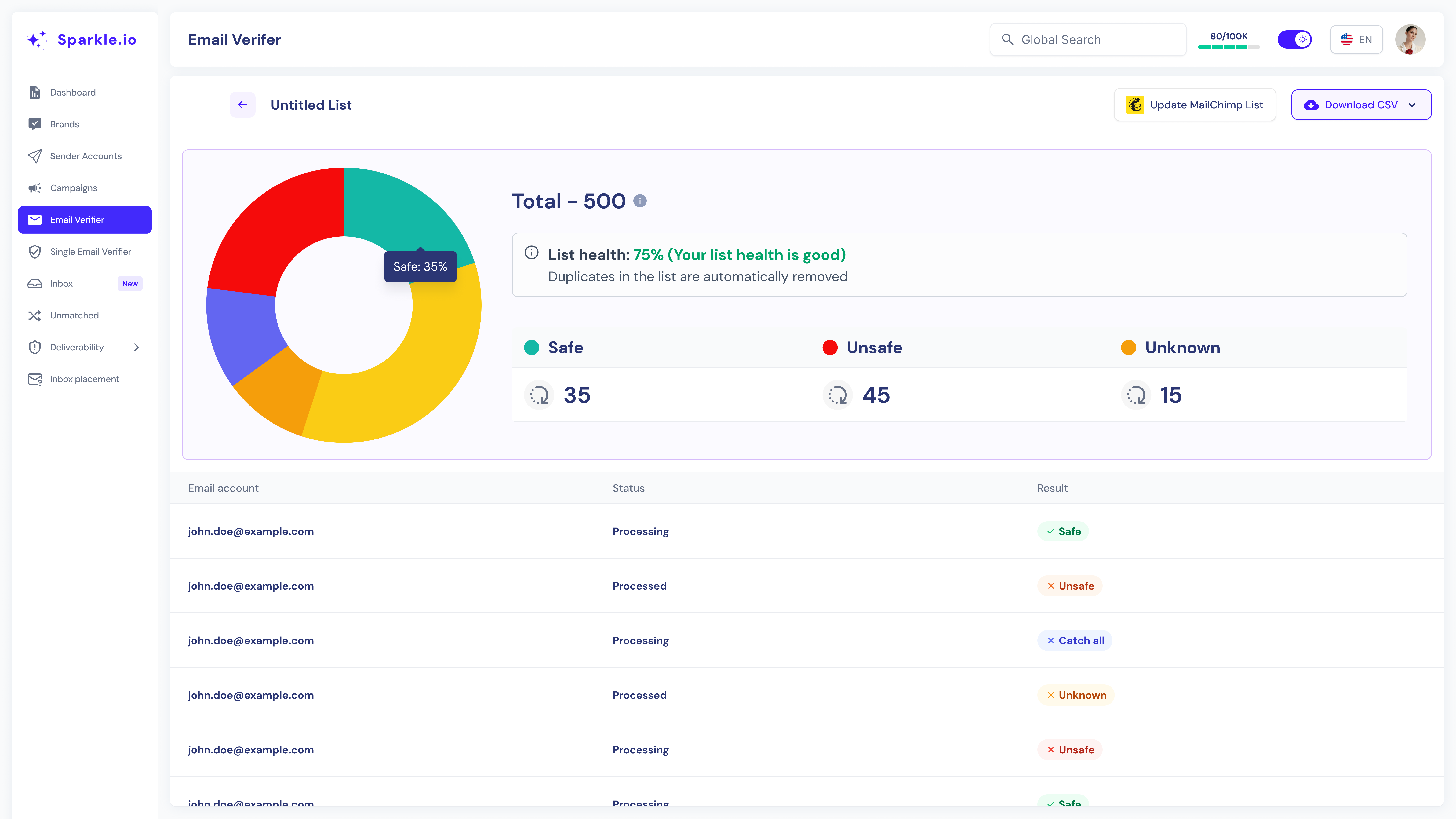 I use Sparkle.io to manage my outbound email workflow and really appreciate that it includes email verification. I find it solves the problem of switching between multiple tools by bringing everything into a single dashboard, which makes it much easier to focus on deliverability. I like the combination of email verification, inbox warmup, and campaign setup all in one place, especially the catch-all email verification feature. The email verification ensures I'm not sending emails to invalid addresses, and the inbox warmup builds a reputation so my emails don't land in spam. The campaign setup ties all features together, and it lets me send outreach without switching tools, which is a huge convenience. The catch-all email verification feature gives me confidence when dealing with domains where deliverability is uncertain. Since Sparkle alone handles many tasks from email verification to campaign management, I don't rely on any other tool at the moment. Review collected by and hosted on G2.com.