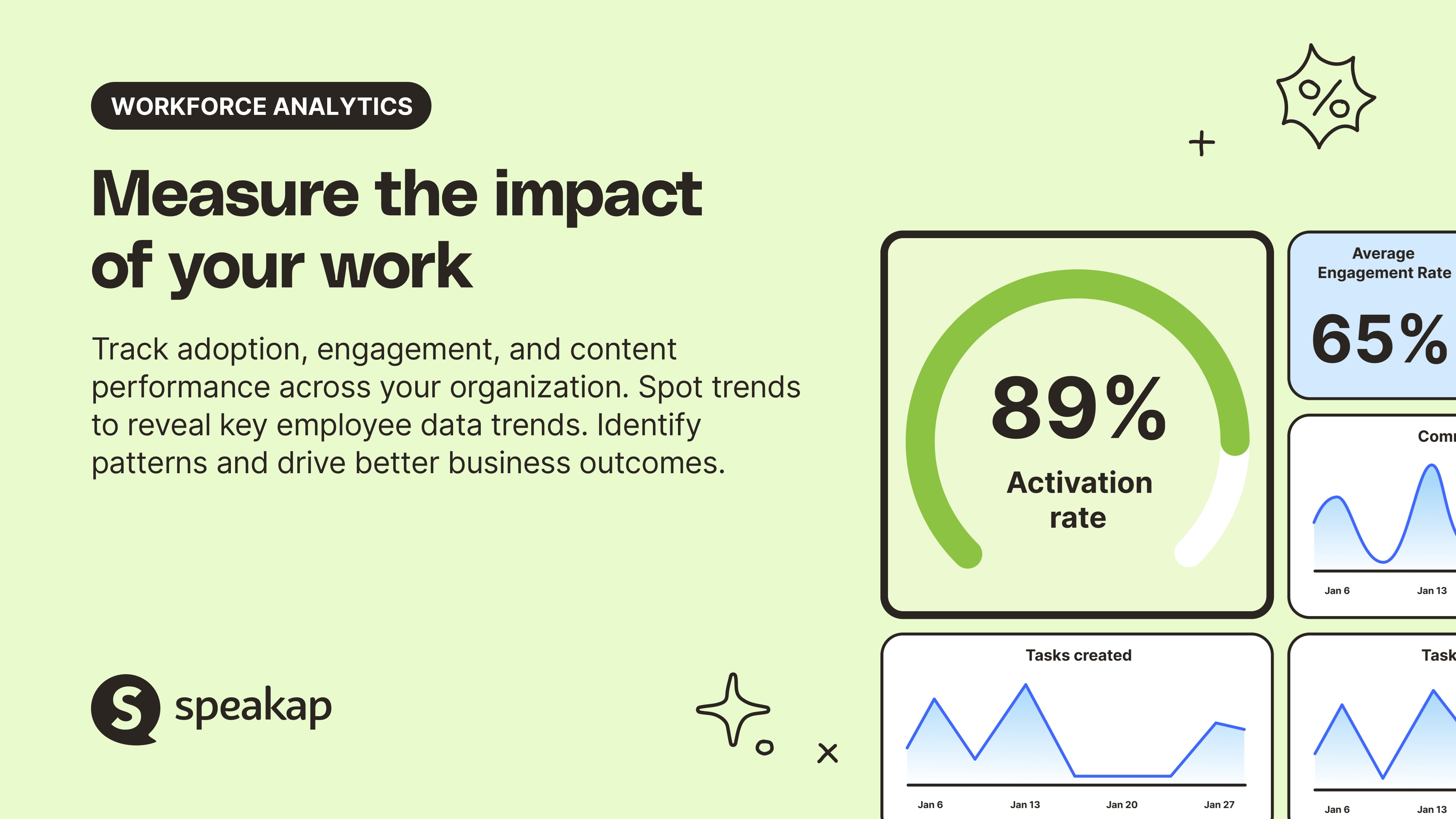 - More than just messaging – Speakap is a full employee experience platform, bringing together onboarding, engagement, compliance, and insights in one place.