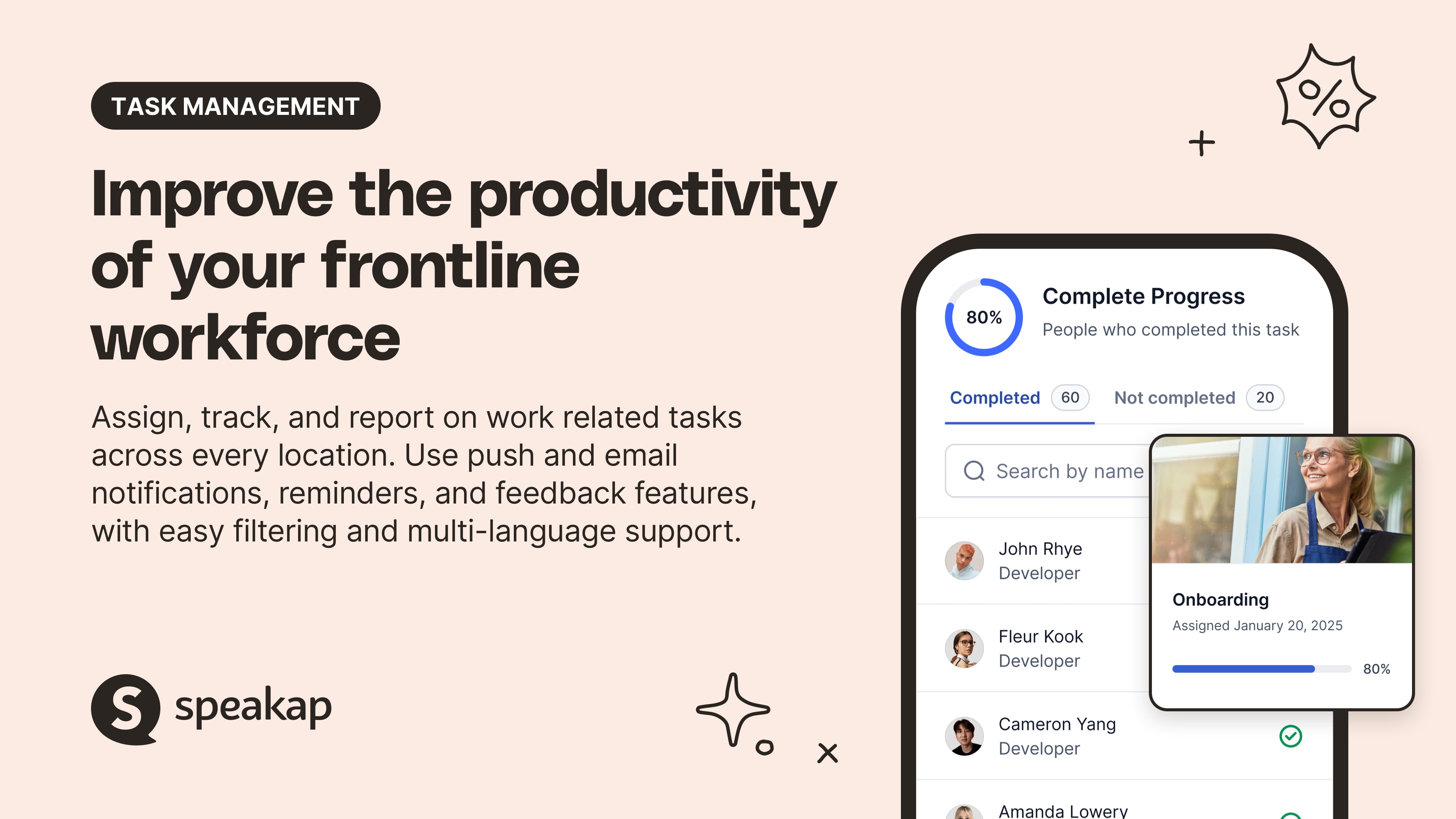 Speakap is the all-in-one employee experience platform built for frontline teams. From communication and engagement to onboarding and compliance, Speakap brings everything your workforce needs into one secure, branded app—no emails, no scattered tools, no corporate noise.