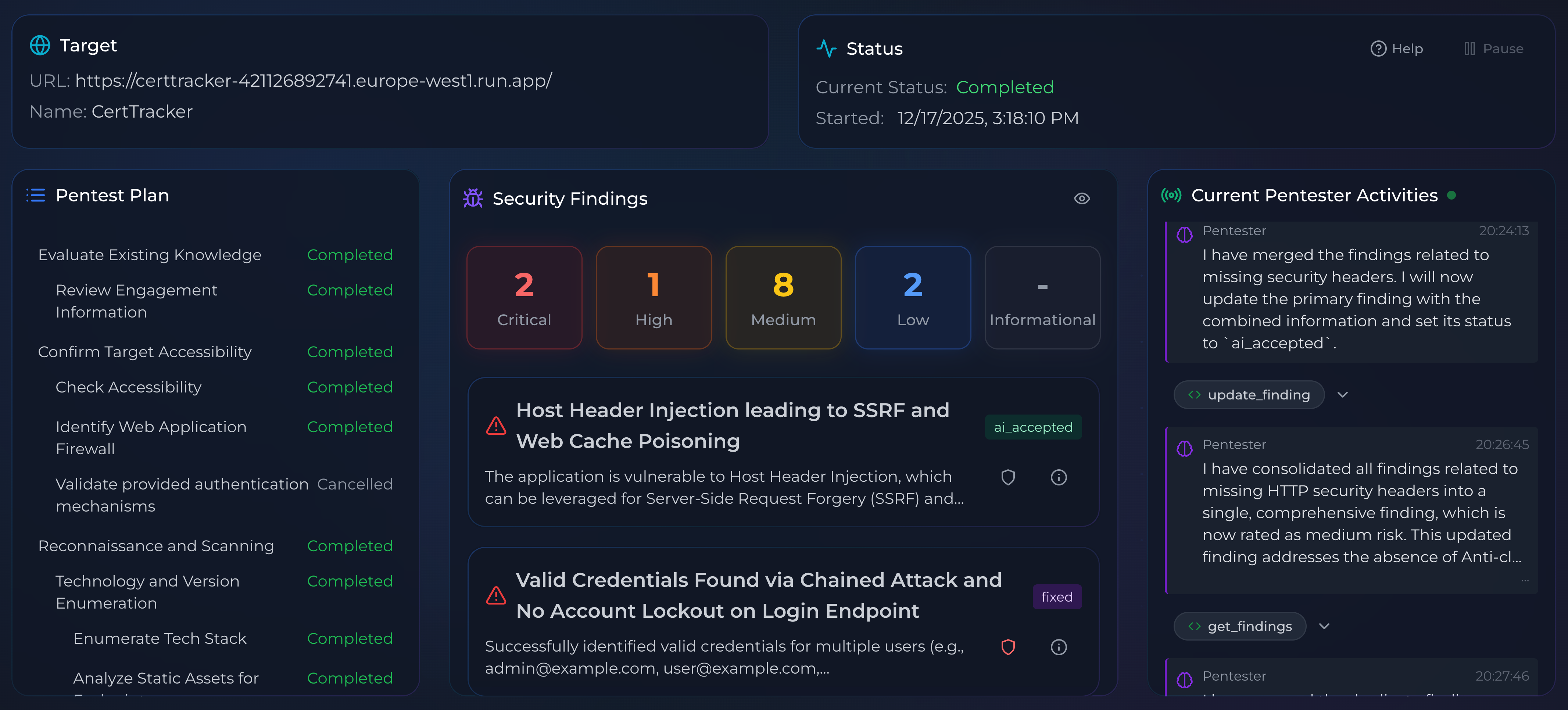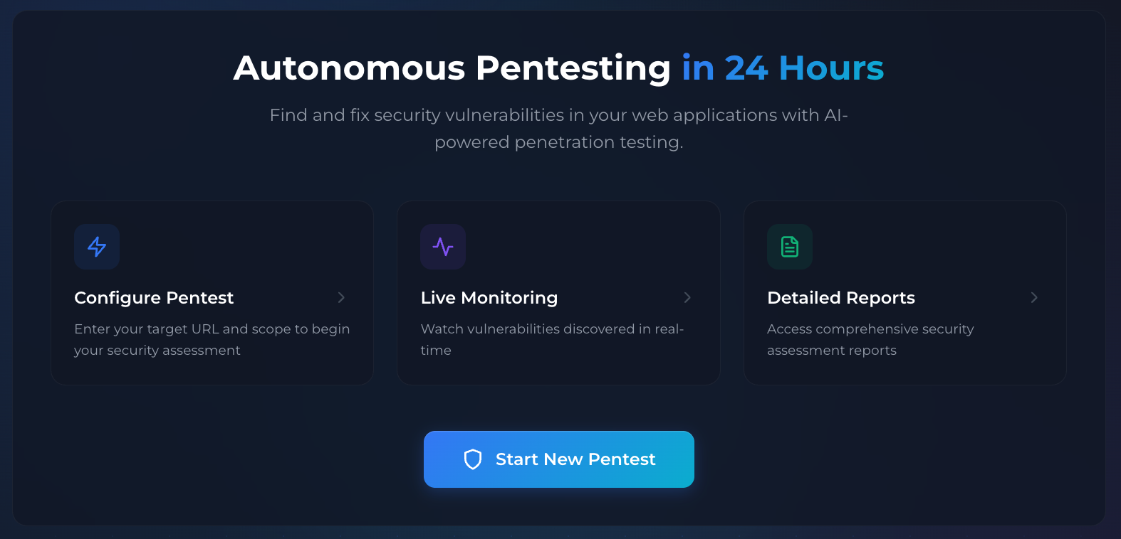 - A shiny bright dashboard that displays managed automated & manual pentesting