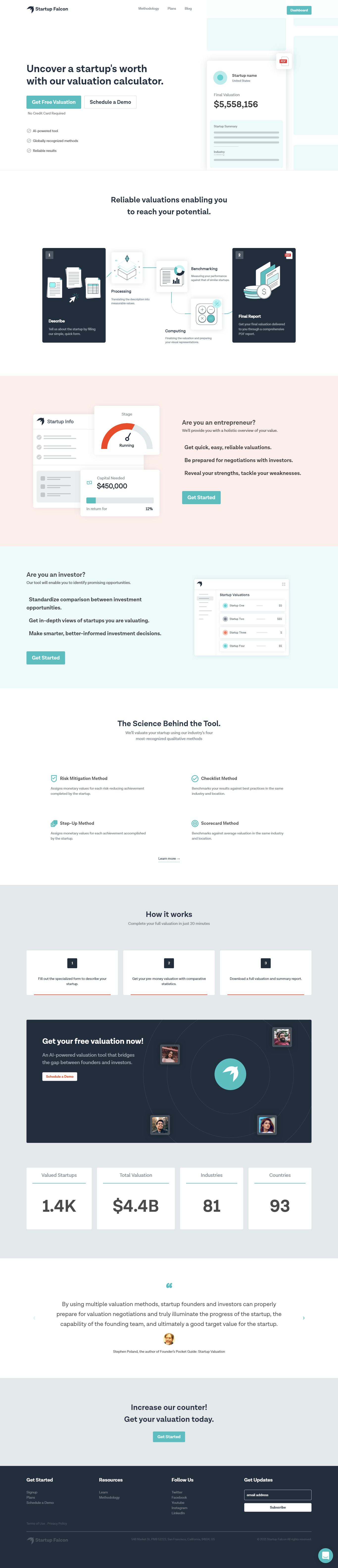 The most valuable part of the Startup Valuation Calculator is its ability to help me determine pre-money valuation. I work with 100s of startups, and it saves me hours. Review collected by and hosted on G2.com.