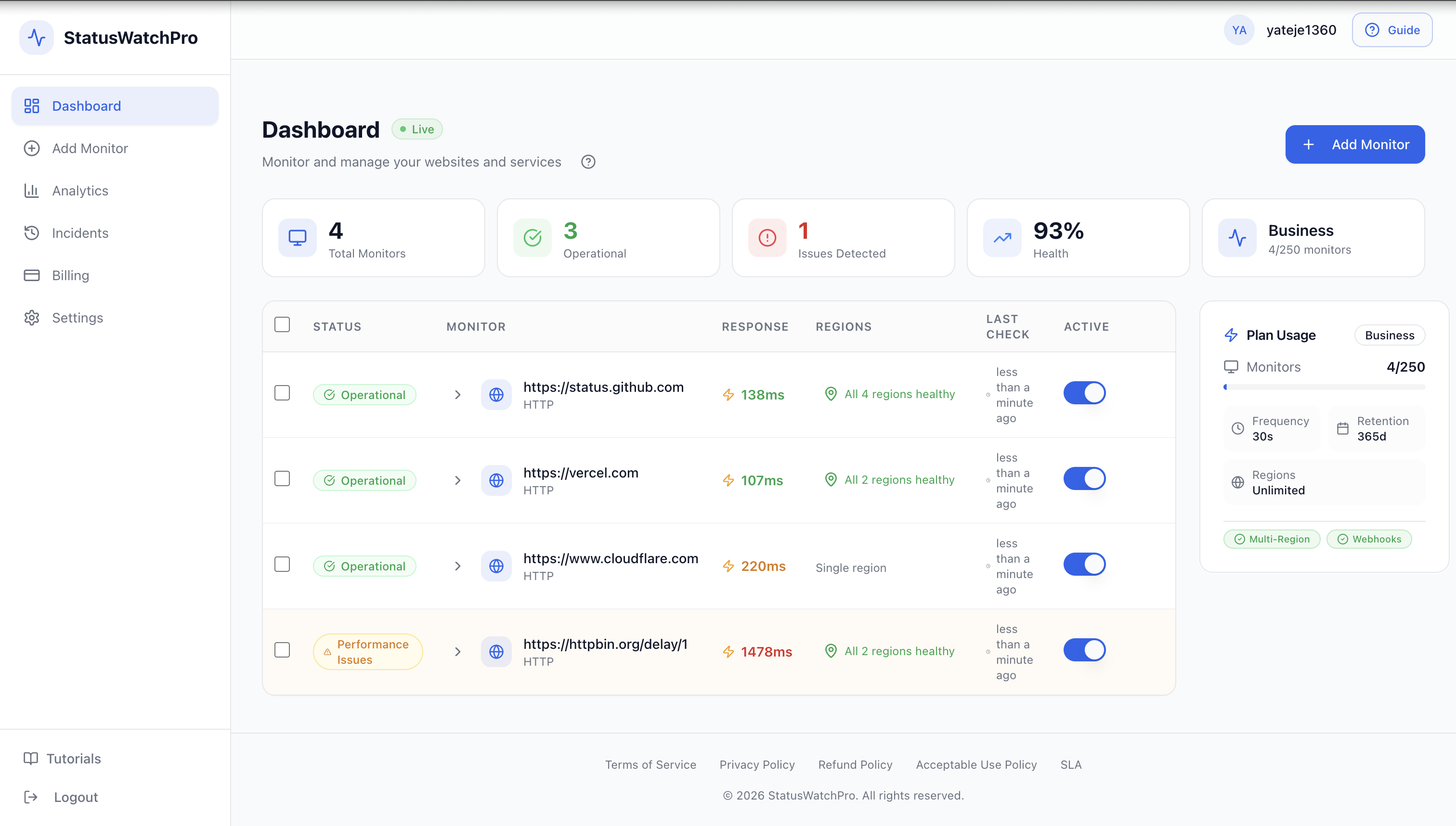 Freshping is a simple Uptime & Performance monitoring tool which helps monitoring uptime/downtime, outages and performance of websites, APIs, web services, web applications with instant outage/down time alerts.