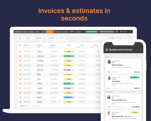 Create and send invoices and estimates on your cell phone in seconds.