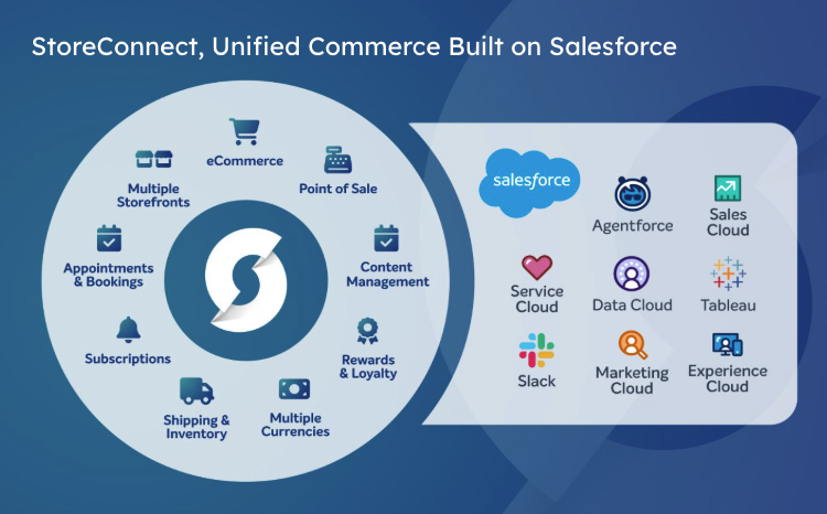 Because StoreConnect is built on Salesforce, it can offer a truly unified commerce experience with a single source of truth across all channels from CRM, to marketing, to online and in-store sales. The end result is ease of administrative operations and happy customers with who keep coming back.
