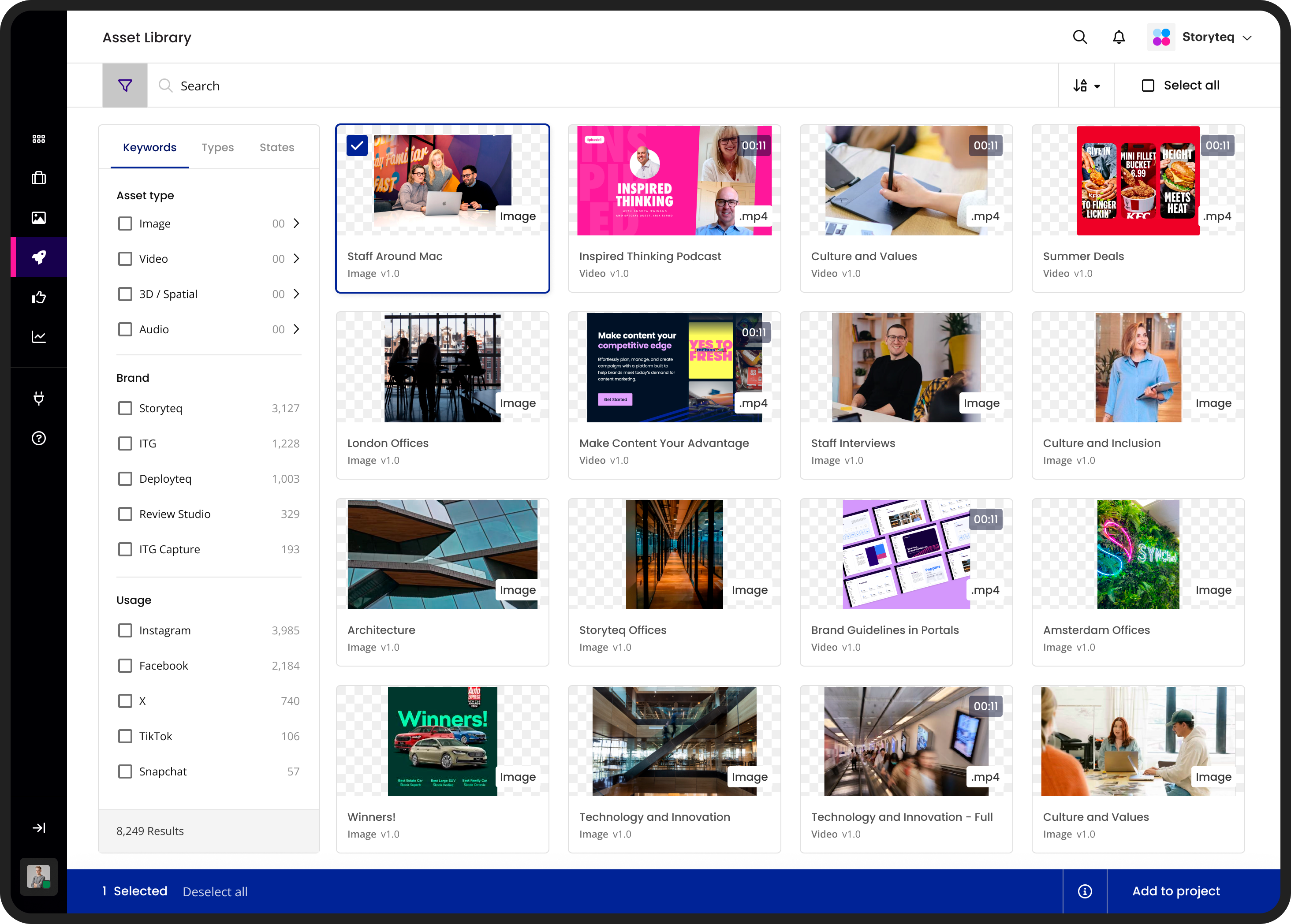 Plus, StoryTeq plays nice with other platforms, so you can seamlessly integrate it into your existing strategy and processes. Whether you're sending out emails, running social ads, or updatingyour website content, StoryTeq makes it easy to deliver consistent, compelling assets across all the channels.
