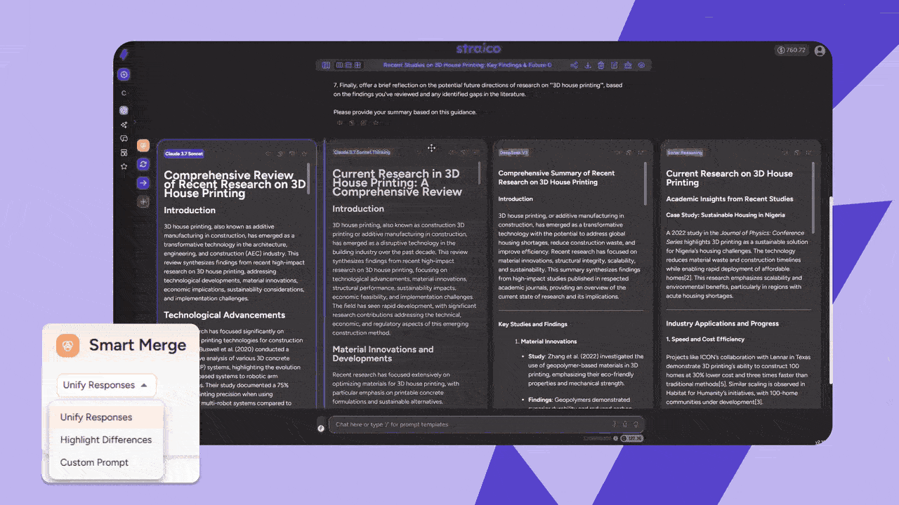 I love having all the AI tools and models in one place—it's super convenient, and I use it every day! Being able to compare different model responses side by side is genuinely brilliant. I can even use the Smart Merge feature to create a synthesis of all the responses, which is really ideal for my workflow.