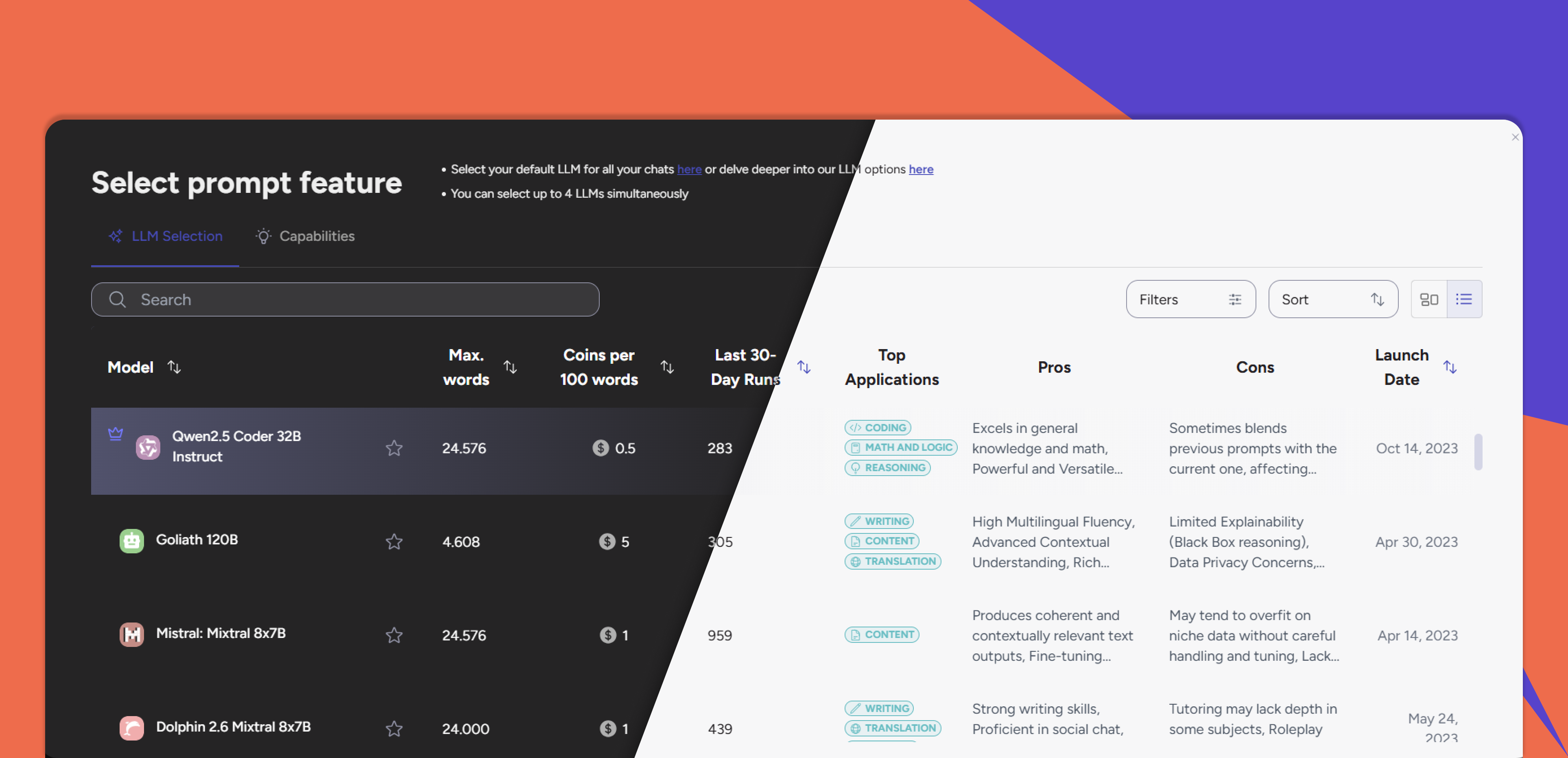 Access over 40 AI models, complete with insights into their popularity, use cases, strengths, and weaknesses. Use intuitive search and filters to find the perfect AI for any task.