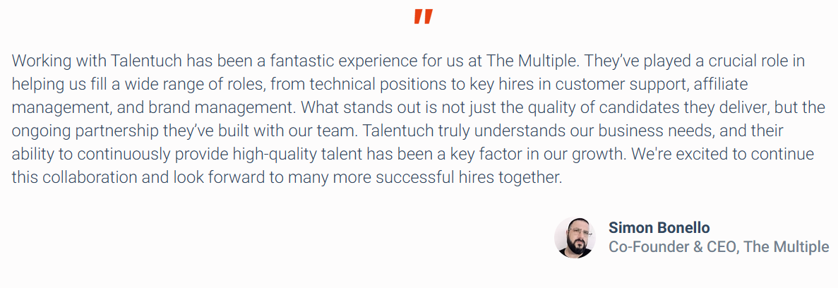Second Talent provides access to pre-vetted tech talent pools from Southeast Asia (Vietnam, Indonesia, Philippines, and Malaysia). We assess their English proficiency, technical skills, and conduct pre-offer reference checks.
