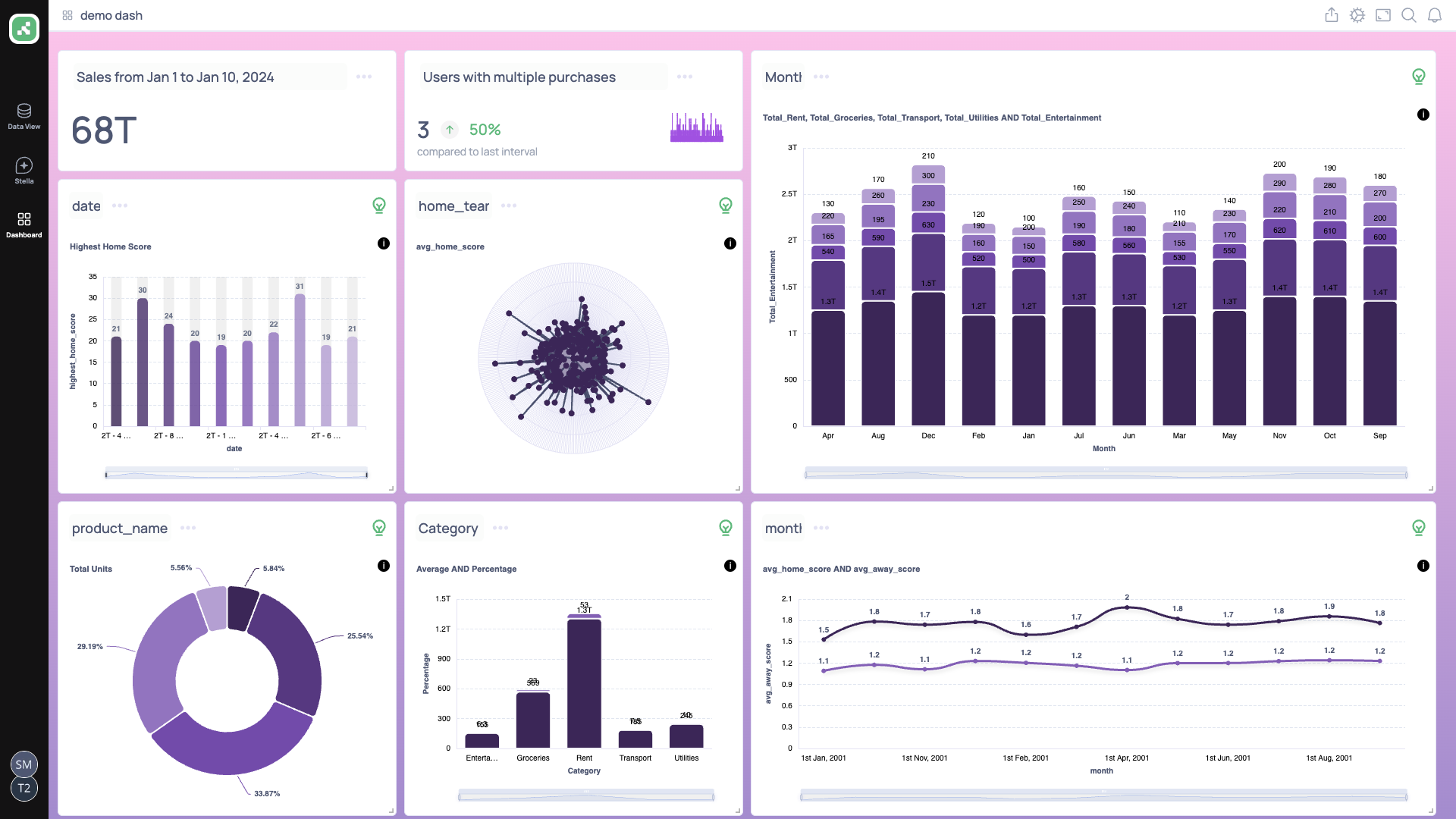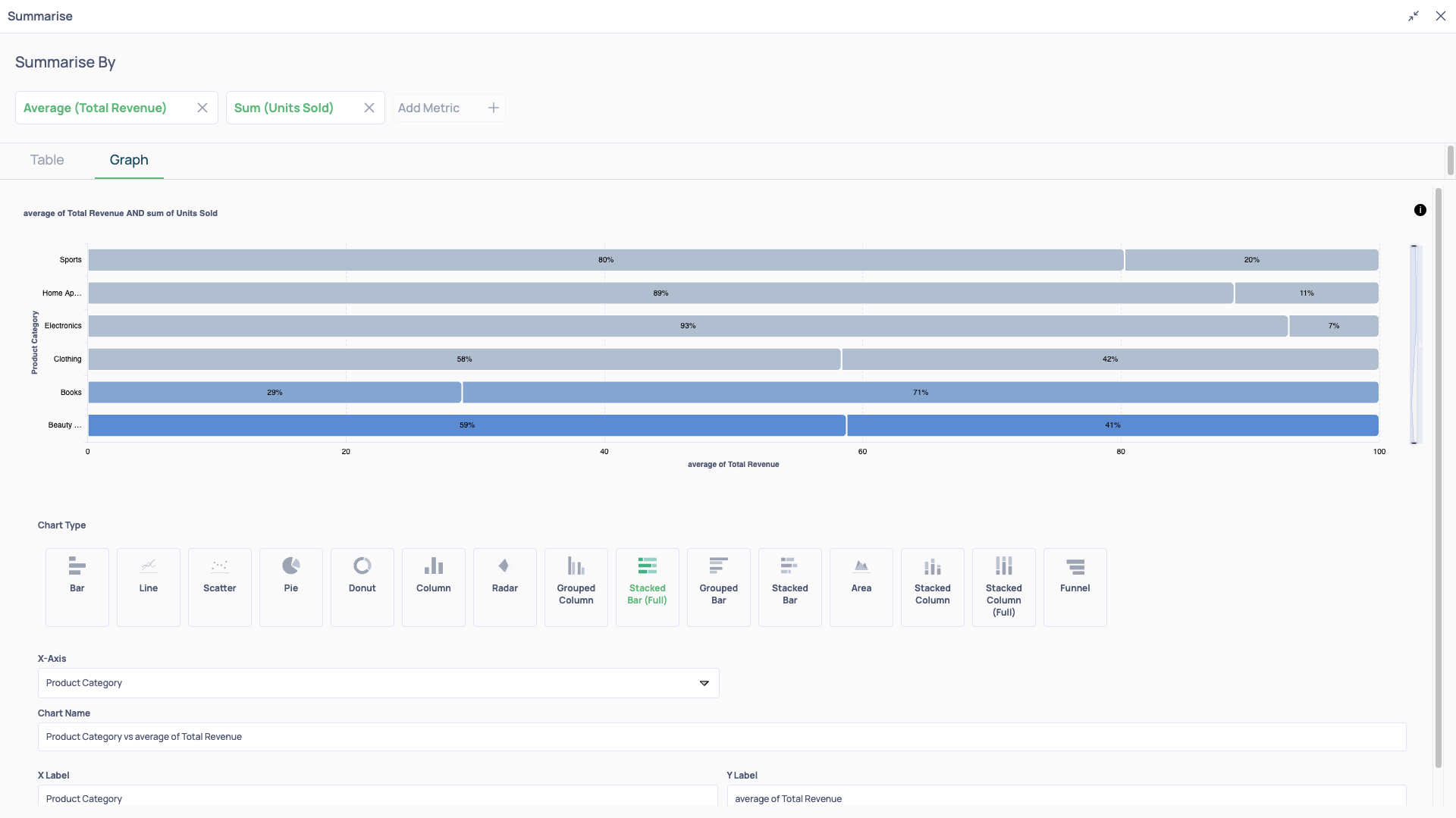 Customizable Visualizations: Build professional-grade reports with over 15 graph types, filters, and themes to communicate insights effectively.