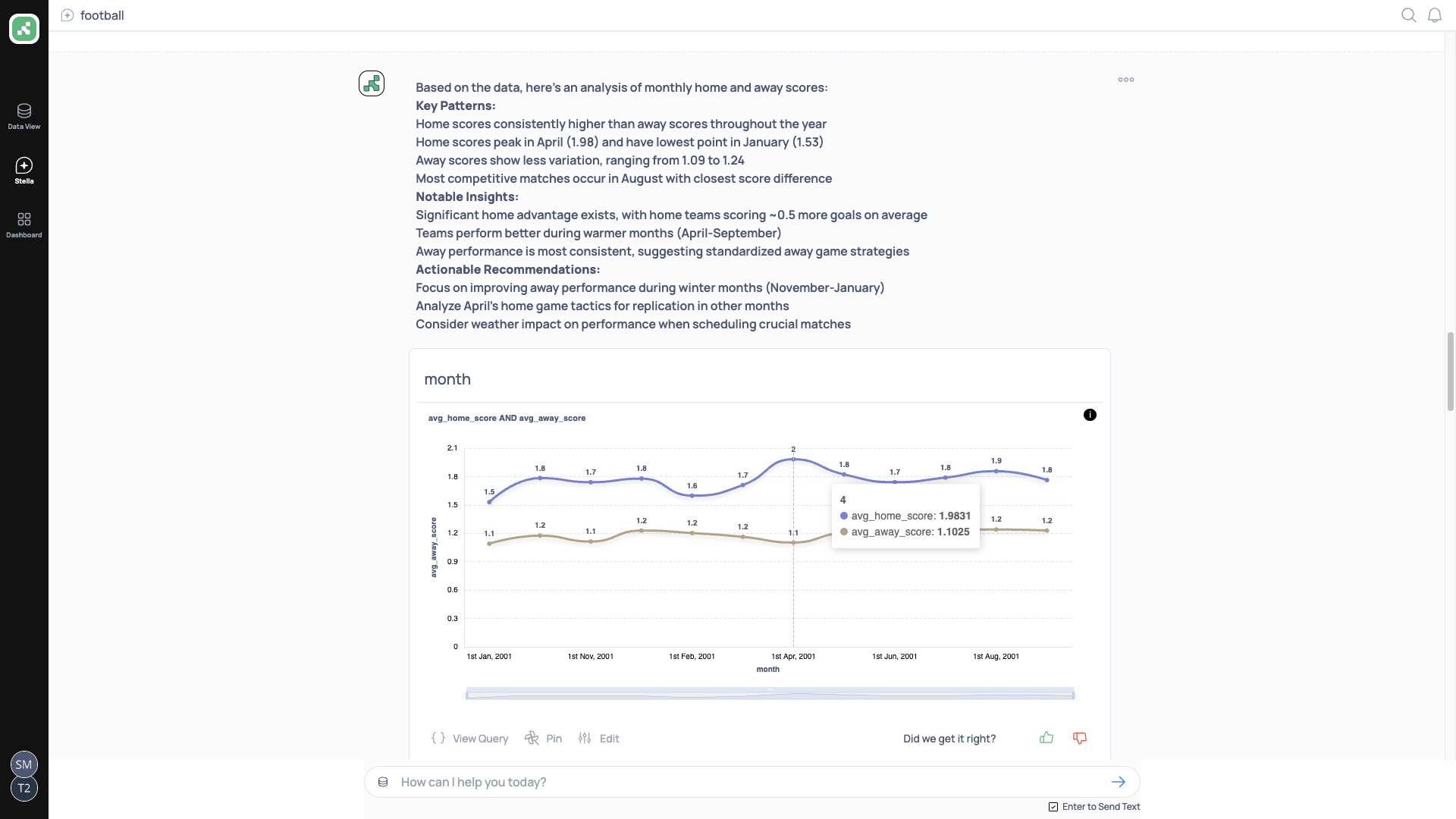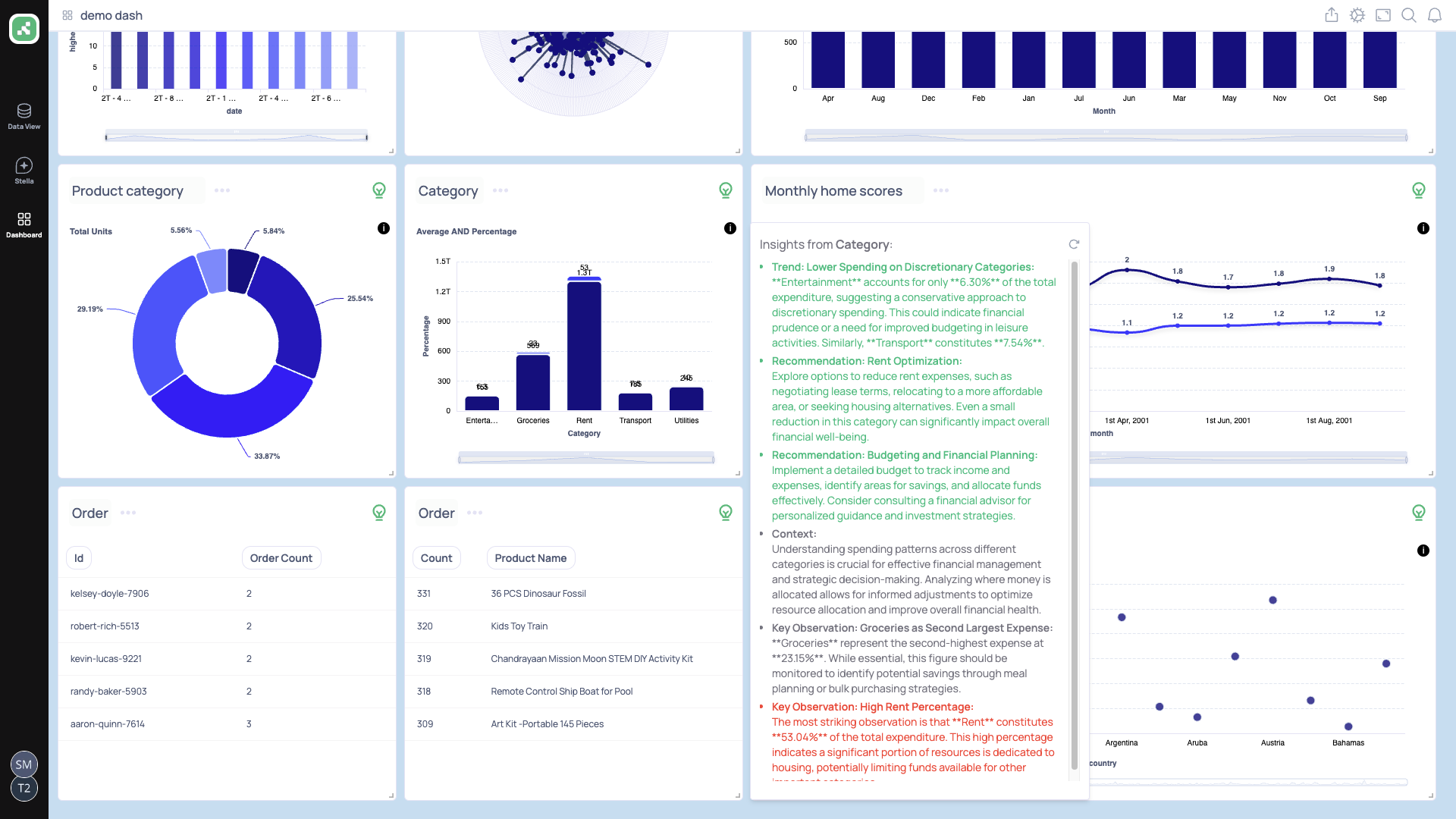 AI-Powered Insights: Supaboard’s virtual analysts use natural language processing (NLP) to answer complex data questions, generate SQL/NoSQL queries, and deliver instant insights tailored to your industry.