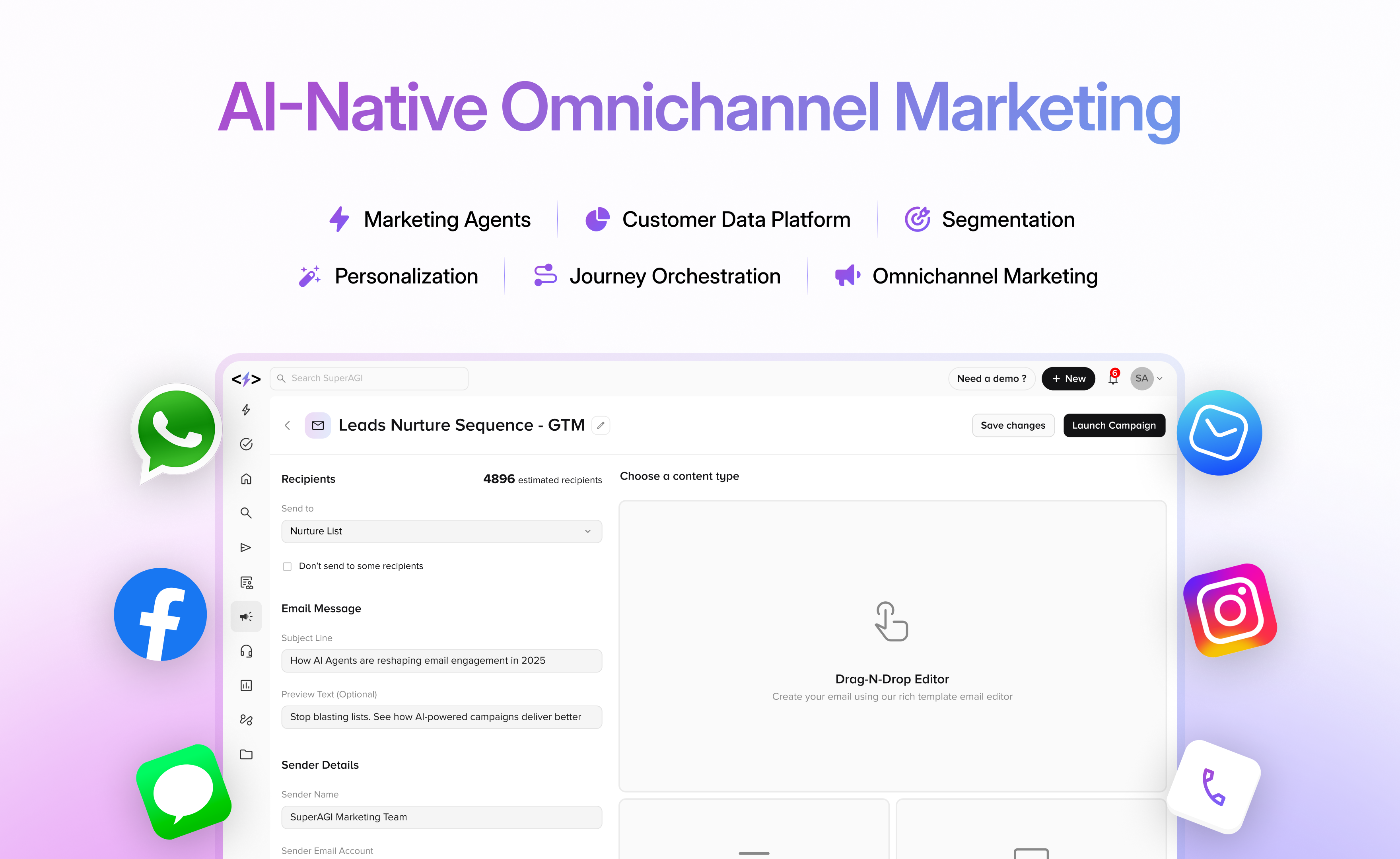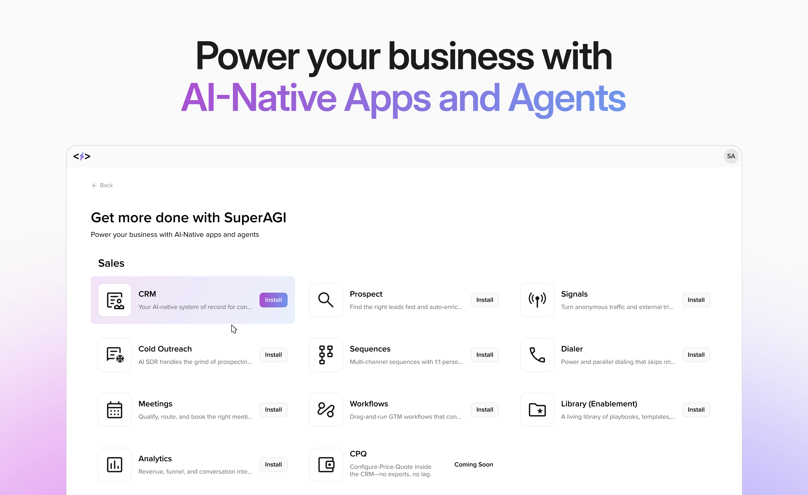 SuperAGI is an AI-native CRM platform that unifies sales, marketing, and customer service teams under one intelligent system. It automates high-impact workflows and continuously learns to personalize every customer touchpoint. By replacing multiple tools with autonomous agents, SuperAGI streamlines operations and drives predictable revenue growth.