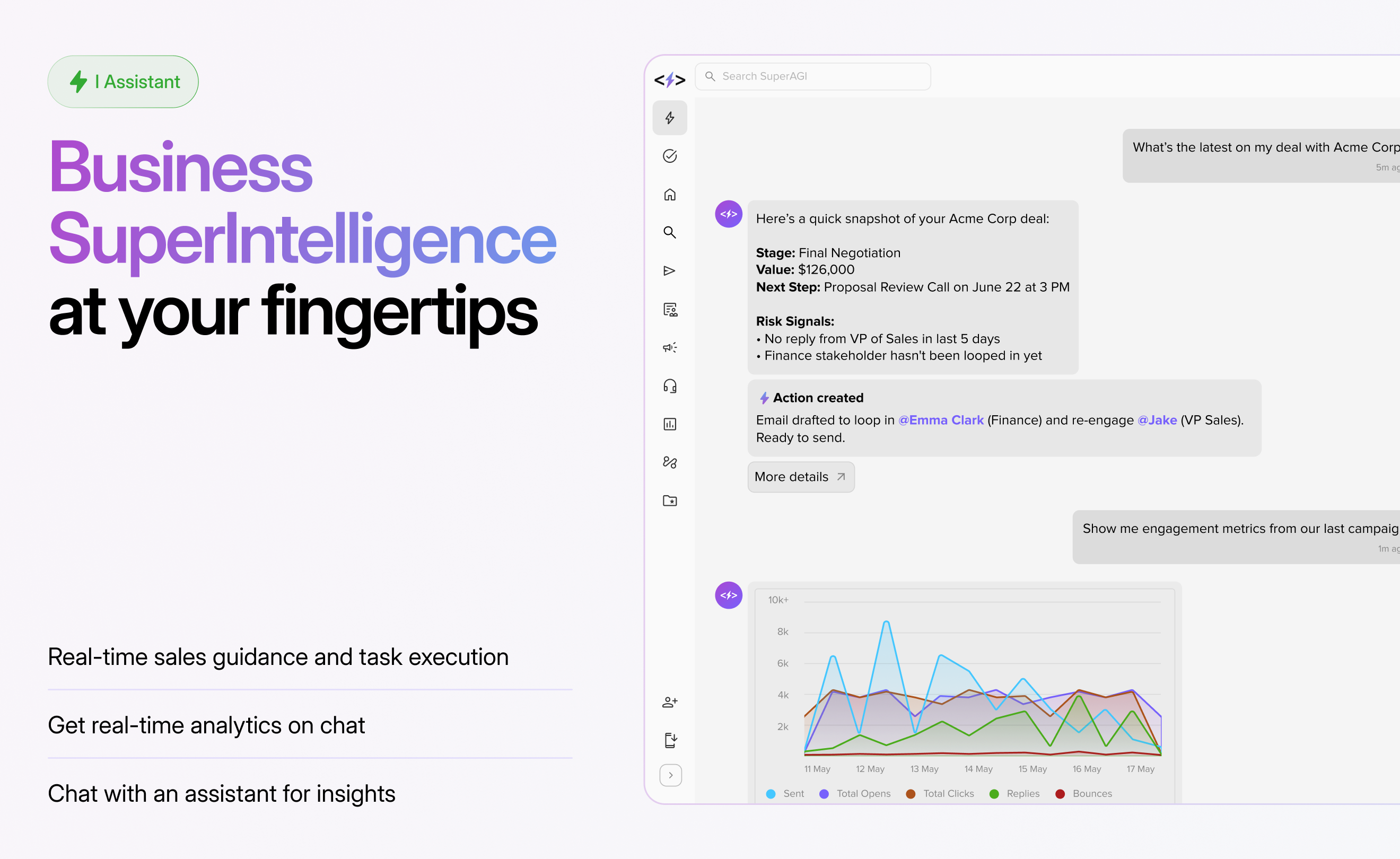 SuperAGI is an AI-driven platform designed to enhance business growth and productivity by integrating intelligent digital workers into sales, marketing, and support teams. By automating routine tasks and optimizing workflows, SuperAGI enables organizations to focus on strategic initiatives and deliver superior customer experiences.