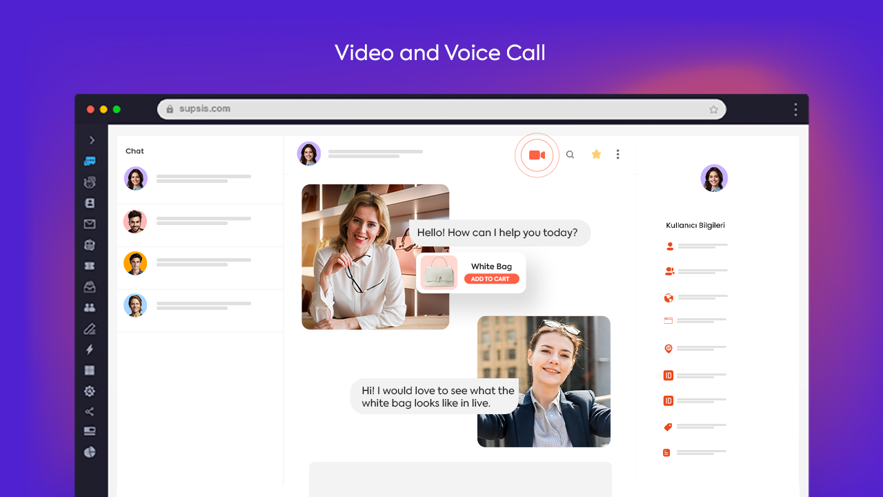 Supsis provides live support communication between you and your website visitors by adding a chat bubble to your website.