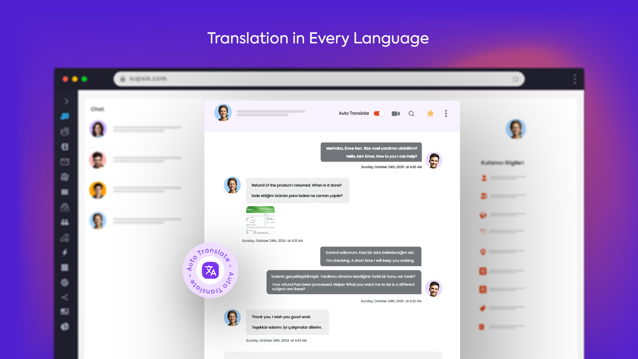 Your agents by using only their own language, they can provide full support to your customers all over the world with the automatic multilingual translation feature.