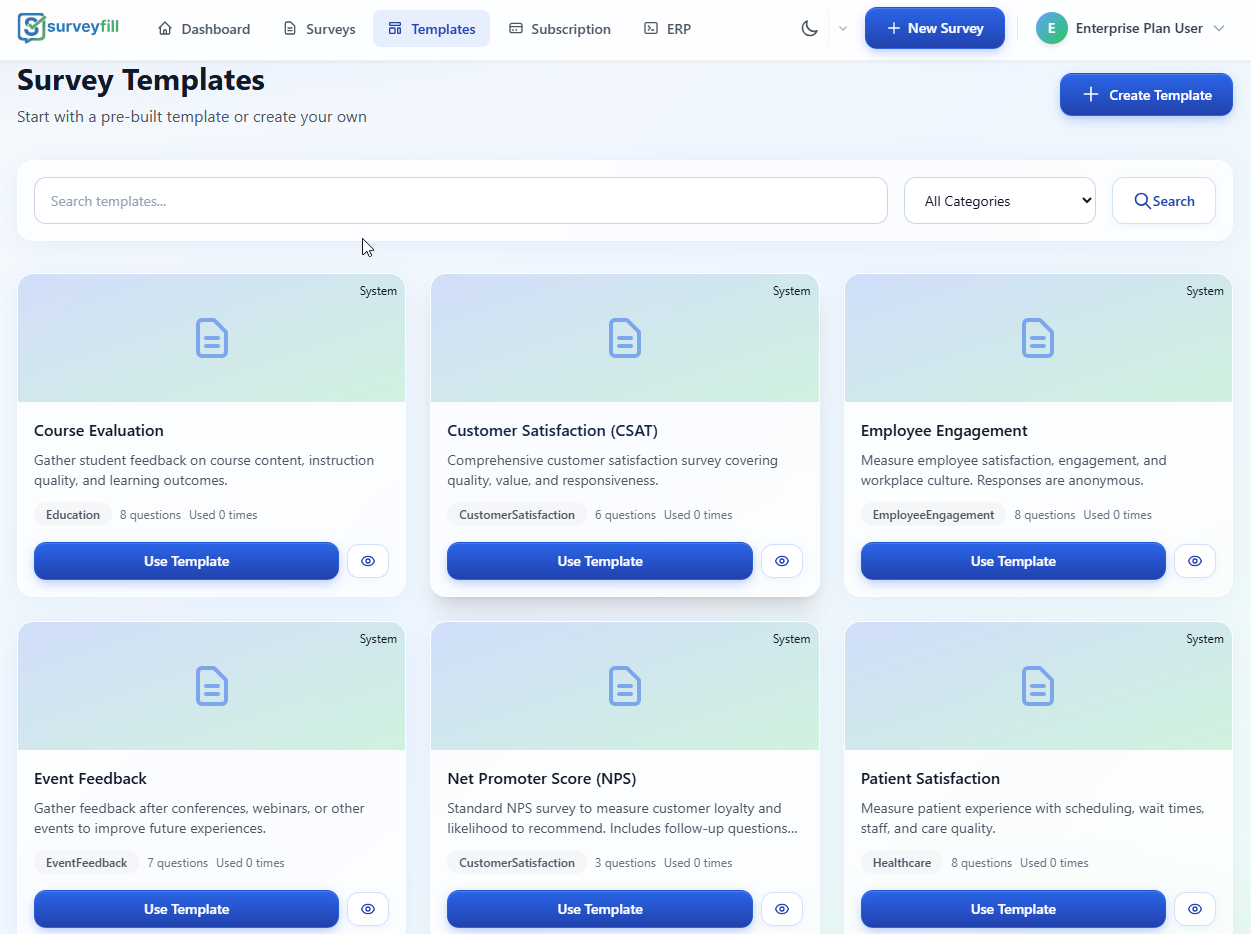 SurveyFill Demo - Business Survey Templates