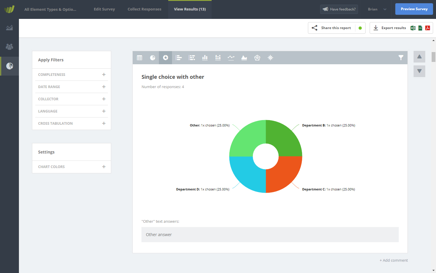 Incredibly flexible and functional. Their flexibility, especially code-based survey sharing, is very powerful. Review collected by and hosted on G2.com.