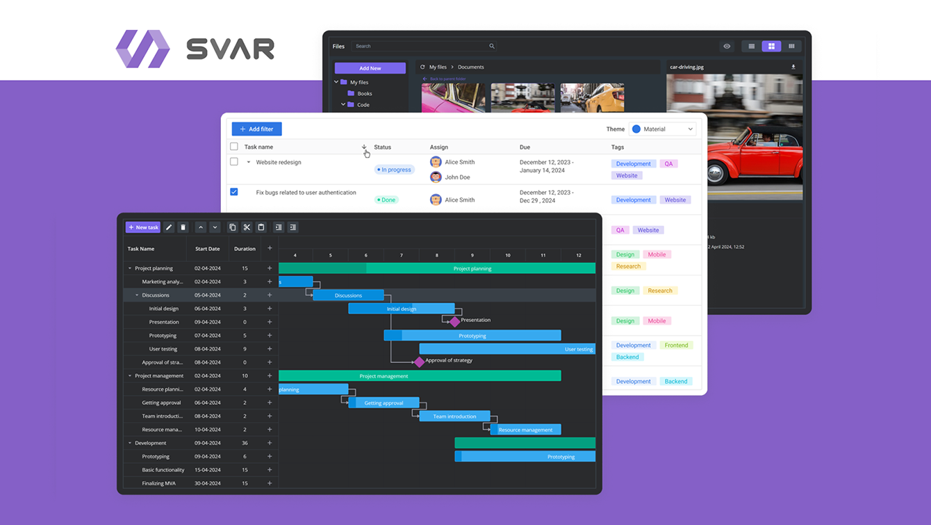Progress Telerik provides controls and reporting for .NET Web (Blazor, ASP.NET Core, ASP.NET MVC, ASP.NET AJAX), JavaScript Web (Angular, React, Vue, jQuery), .NET Desktop (WPF, WinForms, WinUI, UWP), .NET Mobile (Xamarin, MAUI), Embedded Reporting, Automated Testing and Mocking tools.