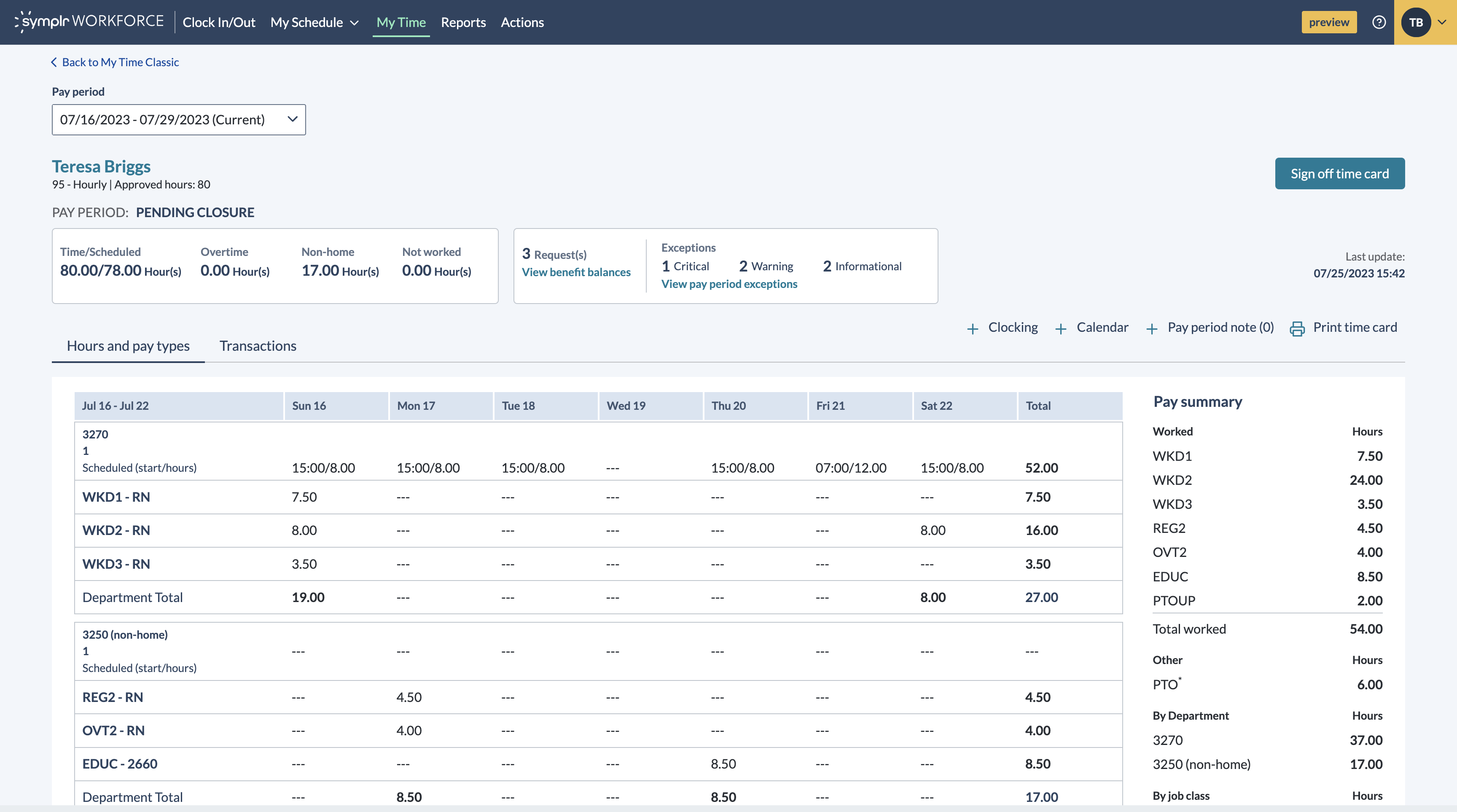 Exception management and labor reporting